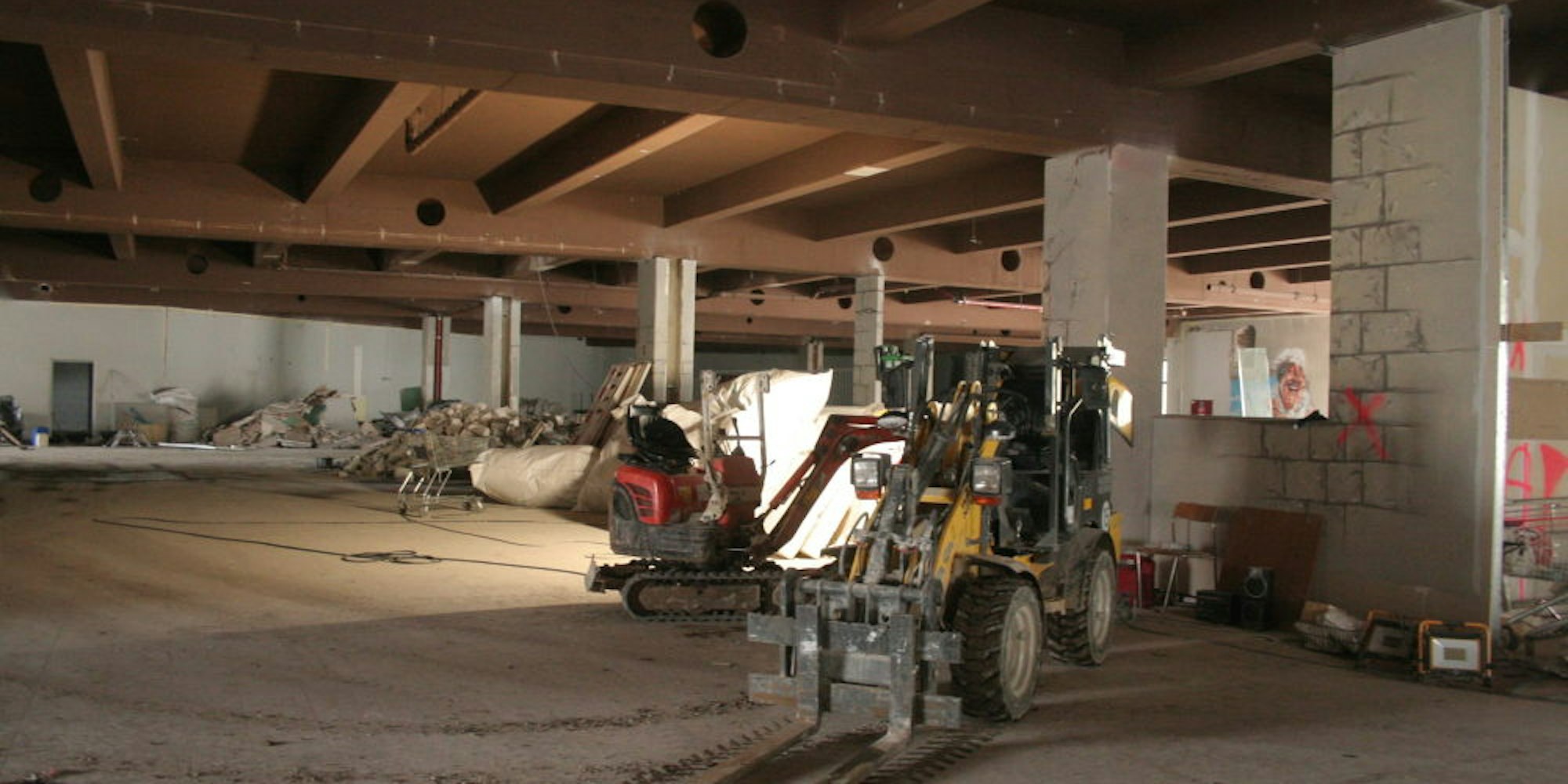 Bedburg – Vor dem Gebäude türmt sich hinter Bauzäunen der Schutt, und immer wieder fährt ein Gabelstapler hinein und hinaus, um noch mehr Schrott und Gerümpel aus dem früheren Toom-Markt zu holen. Der Umbau des seit langem leerstehenden Gebäudes hat begonnen.