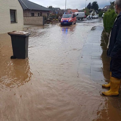 Der Regen habe Schlamm, Unkraut und ähnliches von den Feldern in die Straßen und damit auch in die Gullys gespült, „sodass ein Abfluss der Wassermassen geregelt nicht mehr möglich war“, erklärt Schmitz. „Als unsere Mitarbeiterinnen und Mitarbeiter nach Kirchtroisdorf kamen, waren die Abläufe leider schon verstopft und ein Teil der Straßen standen noch unter Wasser.“