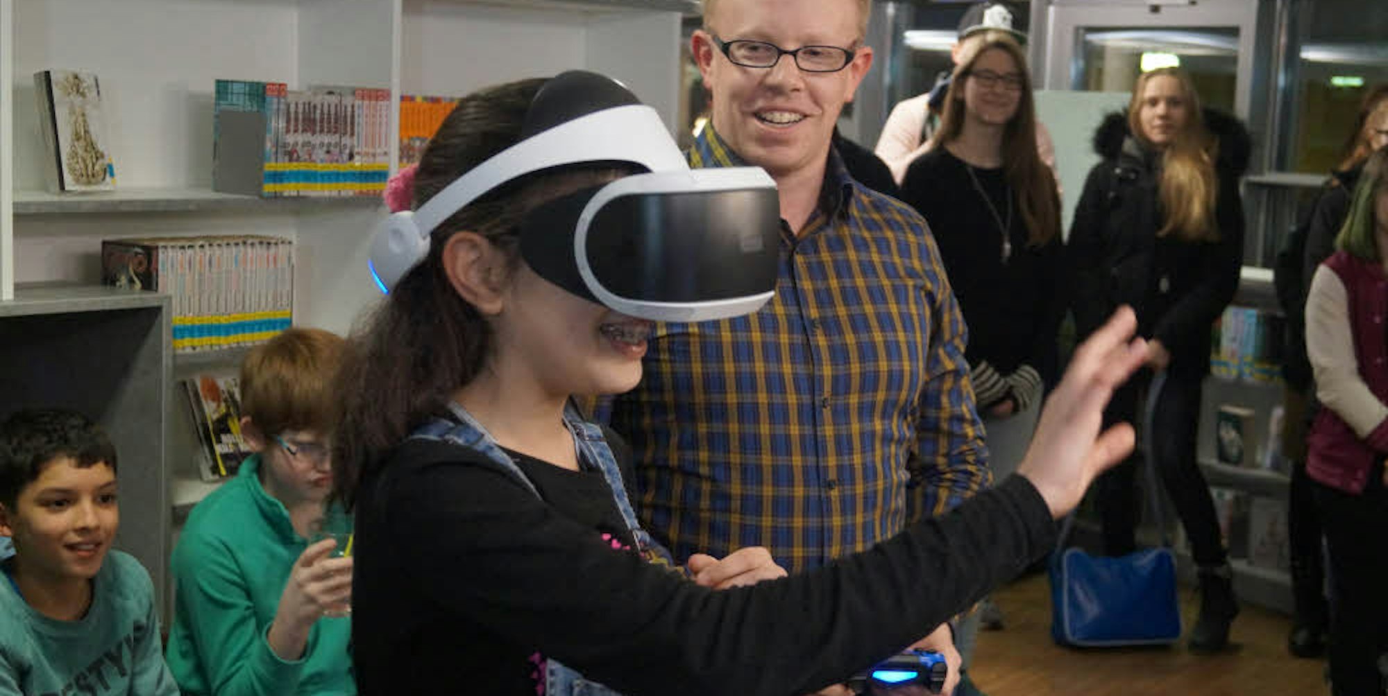Sorgen darüber, dass die Jugendlichen von Playstation, Tablets und Virtual Reality abgelenkt werden, macht sich Joos nicht. „Unsere Aufgabe ist es, Medienkompetenz zu vermitteln. Die Kinder und Jugendlichen sollen einen vernünftigen Umgang mit den Medien lernen. Vor digitalen Medien können wir uns nicht mehr verschließen.“ Und weil sich schnell Schlangen vor der Virtual-Reality-Brille bildeten, sahen sich die Jugendlichen auch bei den Büchern um. Und der ein oder andere nahm sogar eins mit nach Hause.