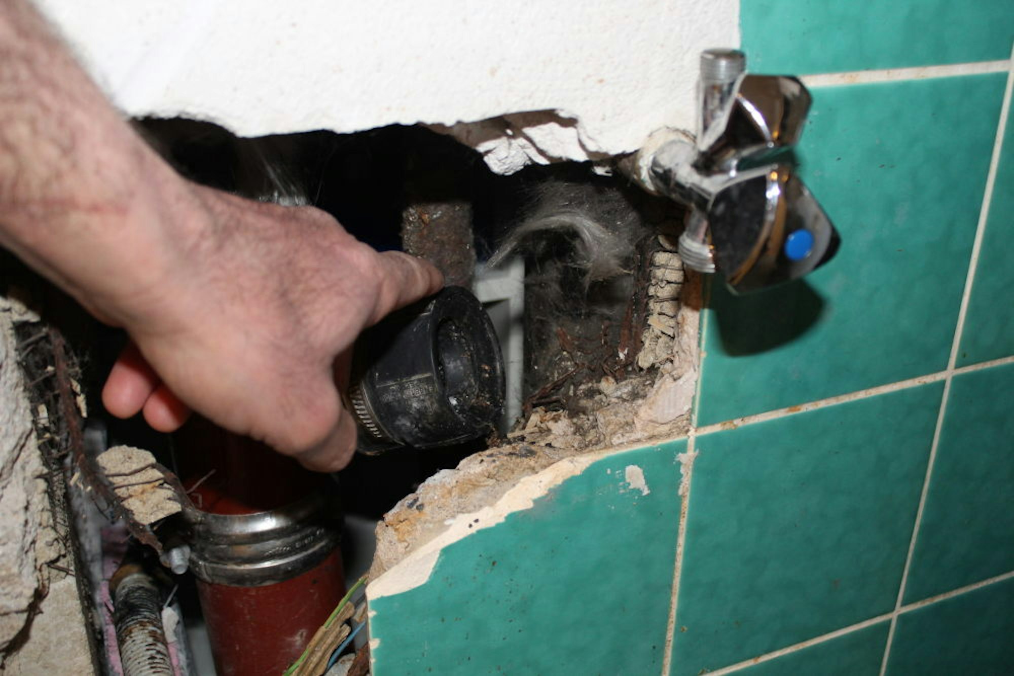 Aber nur fürs Erste: „Nach zwei oder drei Monaten kommt das Wasser wieder aus der Wand“, berichtet Amira S.. Dann würden sie und ihr Mann jedes Mal mit Wischmopp und Eimer das Wasser aufwischen. Jedes Mal sei wieder ein Mitarbeiter geschickt worden. Der mache mit Rohrreinigungsspiralen das betroffene Rohr zwar frei, und dann sei erst mal wieder Ruhe.