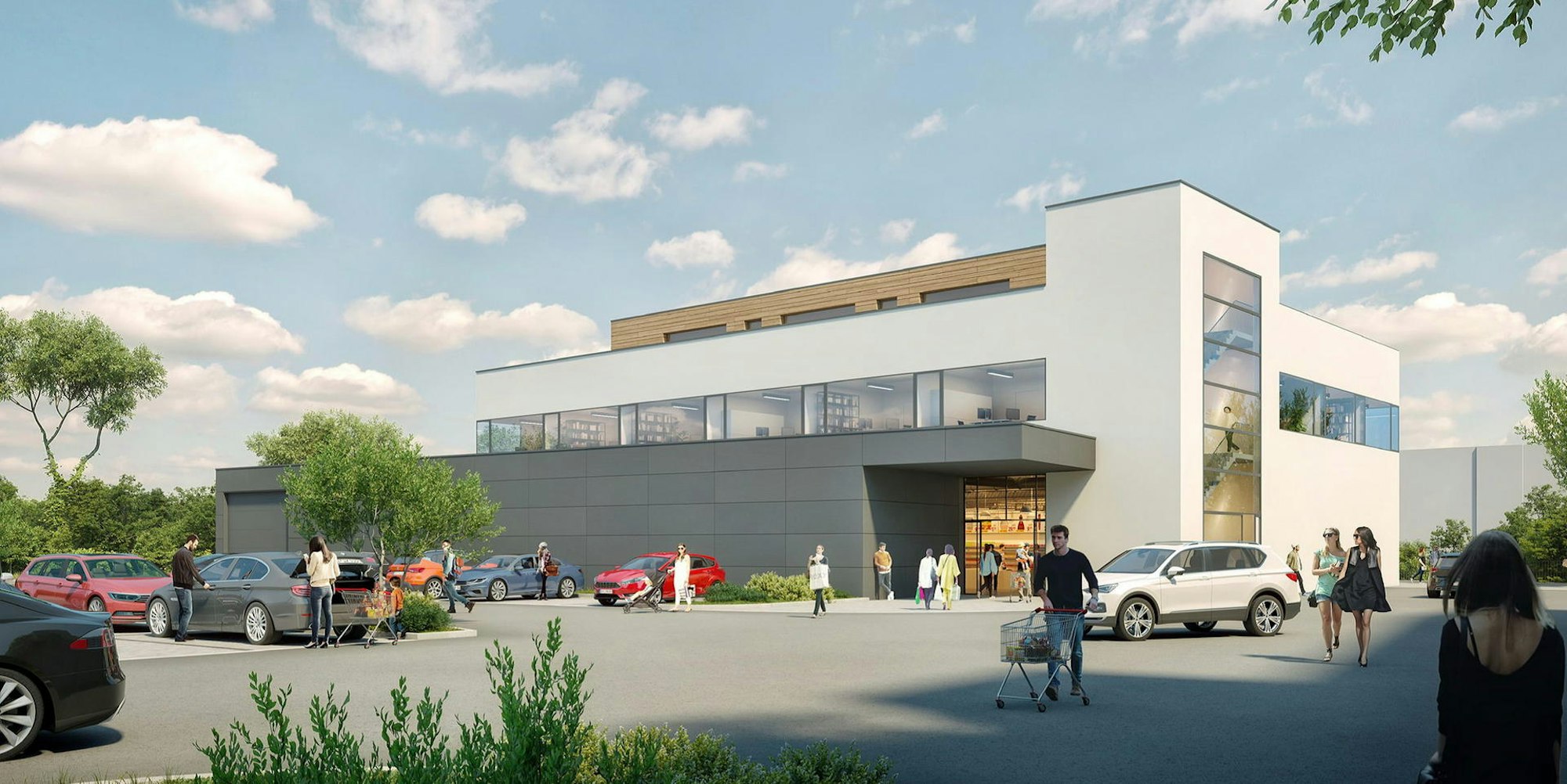 Ins Erdgeschoss des ehemaligen Hit-Gebäudes, in dem jetzt unter anderem das Straßenverkehrsamt untergebracht ist, ziehen die Richraths mit einer Rewe-Filiale von der Zeppelinstraße um. Darüber könnten Wohnungen und Büros entstehen. Neben dem Rewe, hin zur Stadt, sollen Parkplätze gebaut werden. Und für das letzte Flurstück schwebt den Richraths entweder ein Drogeriemarkt oder ein Hotel aus Überseecontainern vor. Die Grundstücke für Parkplätze und das weitere Gebäude gehören den Unternehmern noch nicht.