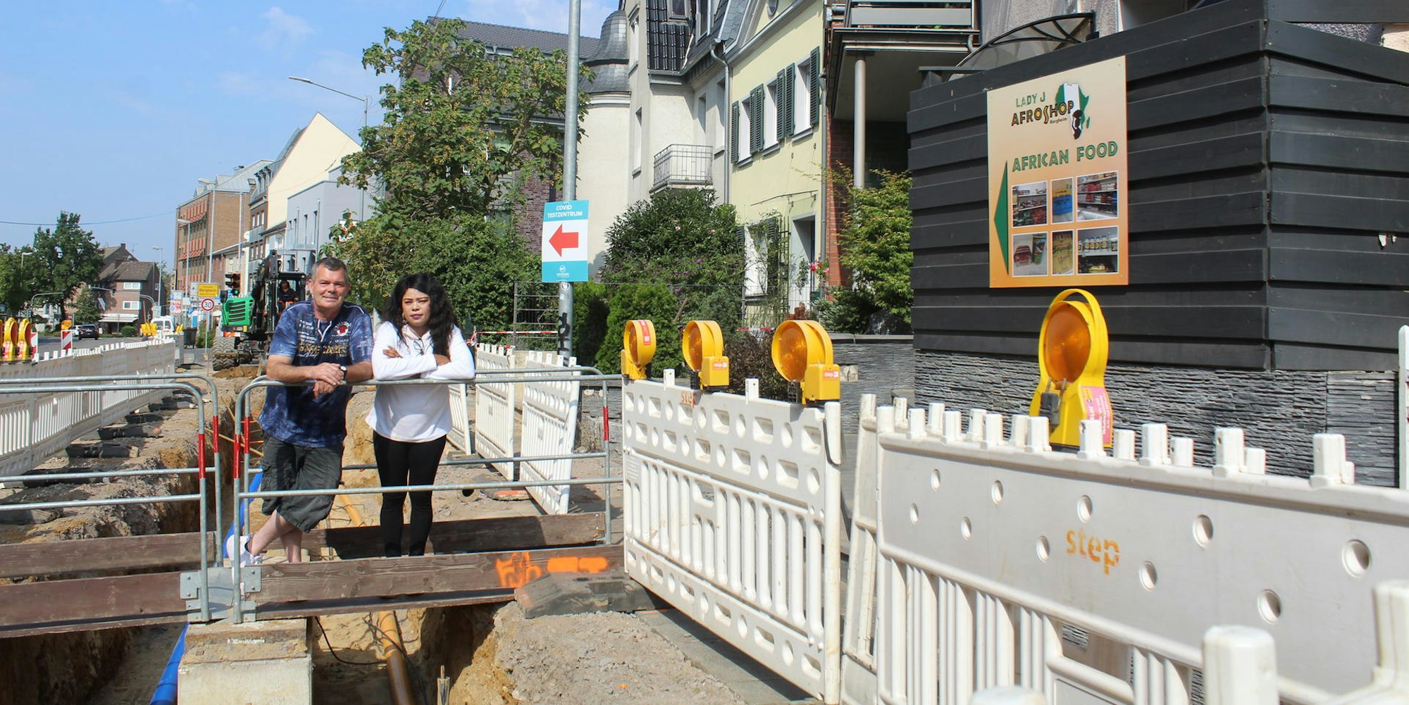 Sie betreibt seit November 2019 einen Afro-Shop an der Kölner Straße 23, also einen Laden für kulinarische Spezialitäten aus Afrika. Er ist Angestellter in einem anderen Betrieb, unterstützt seine Frau aber rund um den Laden. Weil es derzeit schlecht läuft, auch finanziell. Direkt vor der Tür wird der Kanal saniert. Und es gehe nur sehr schleppend voran, berichtet Vetten. „Die Arbeiter können da nichts für“, stellt Vetten gleich klar. Auch wisse er, dass der Kanal gemacht werden müsse. Aber er hält die Planung der Stadt für verfehlt, die Arbeiten dauerten einfach zu lange. Denn die Dauerbaustelle sei geschäftsschädigend. Es gebe Tage, da lägen die Einnahmen seiner Frau bei sechs oder sieben Euro.