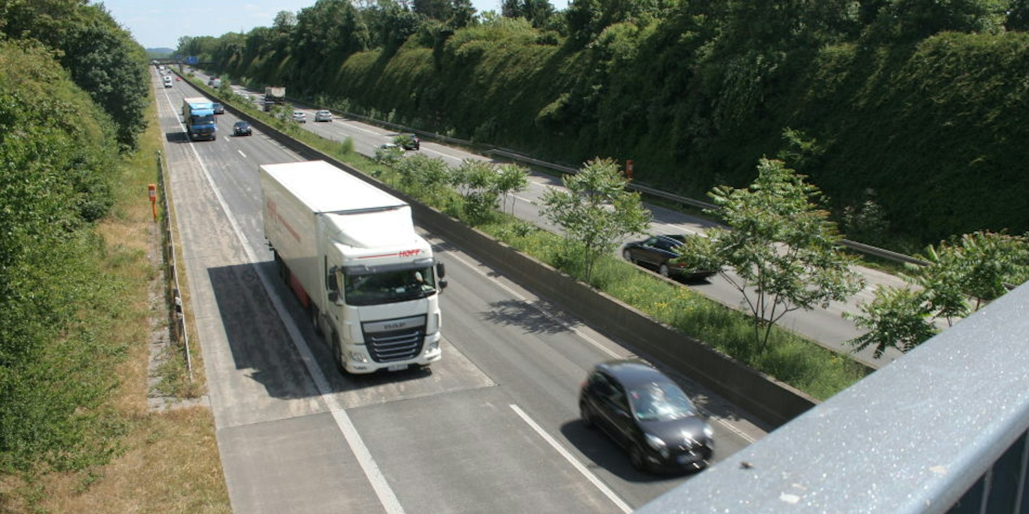 Doch die Vermessungsarbeiten sind nur Vorboten weit größerer Baustellen, die in den nächsten Monaten und Jahren auf der Autobahn zwischen Bergheim und Kerpen in beiden Fahrtrichtungen folgen werden. Die Fahrbahn muss erneuert werden.