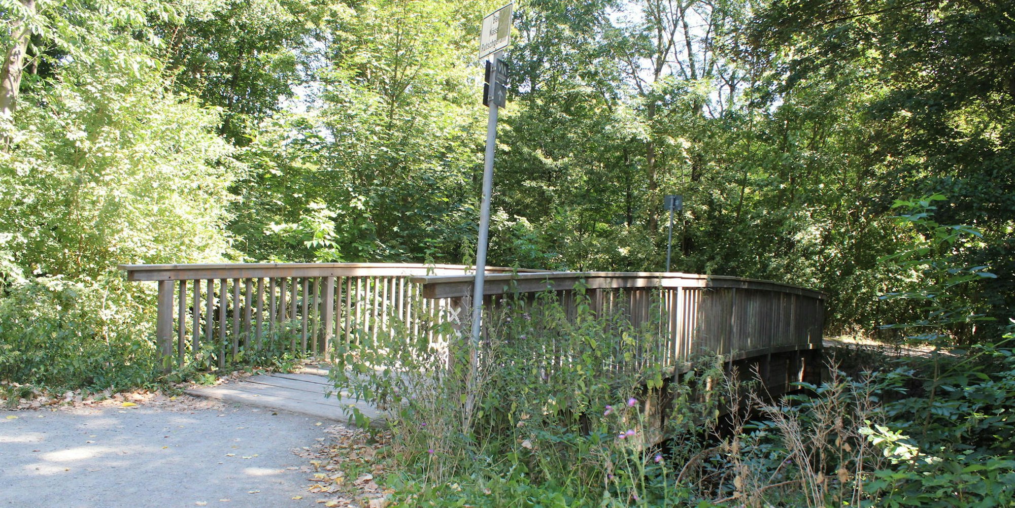 Diese und eine weitere Holzbrücke in der Nähe des Lukas-Podolski-Sportparks werden abgerissen und durch neue ersetzt. Im November soll es voraussichtlich losgehen.