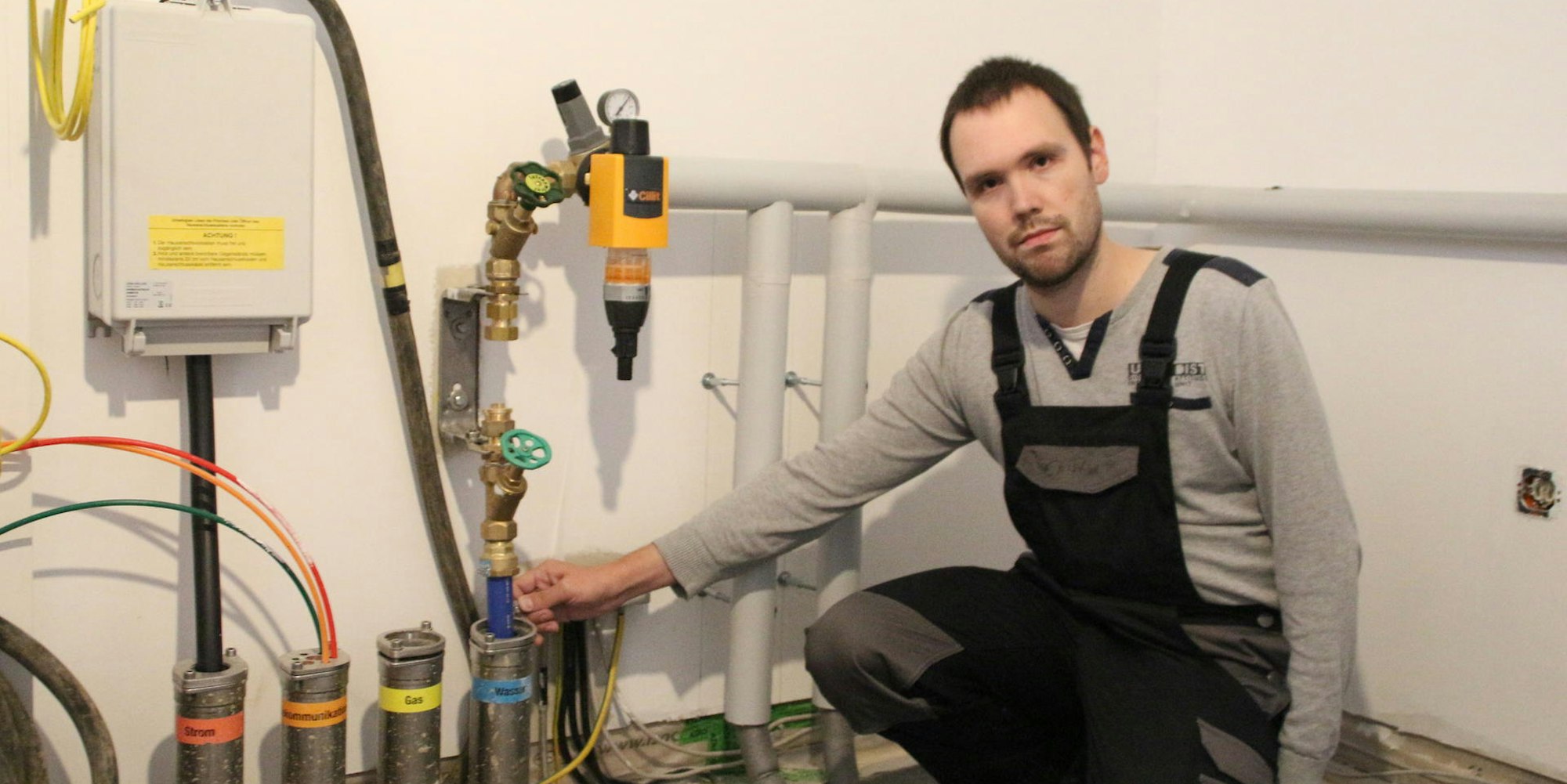 Bergheim-Rheidt-Hüchelhoven – Er und seine Familie seien nicht die ersten, die mit dem Unternehmen Problemen hätten, sagt Christian Scholz. Schon die künftigen Nachbarn an der Grünewaldstraße hätten ihn vor dem Verhalten eines Subunternehmens des Wasser- und Stromversorgers Westnetz gewarnt. Jetzt kniet Scholz vor einem Wasserrohr und deutet auf die Schäden hin, für die Mitarbeiters des Subunternehmens verantwortlich sein sollen.