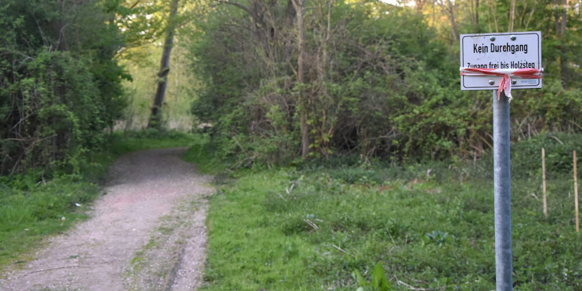 Bergheim-Paffendorf – Offenbar häufig wird ein Trampelpfad über die Dammkrone genutzt, um den Biotoptümpel zu umgehen, über den bis Februar ein Holzsteg führte. Am Zulauf zum Biotop wird der Pfad durch eine feste Absperrung unpassierbar gemacht. Auch der Wanderweg entlang des Erftflutkanals im Paffendorfer Wald ist gesperrt. Das teilt die Stadtverwaltung mit.