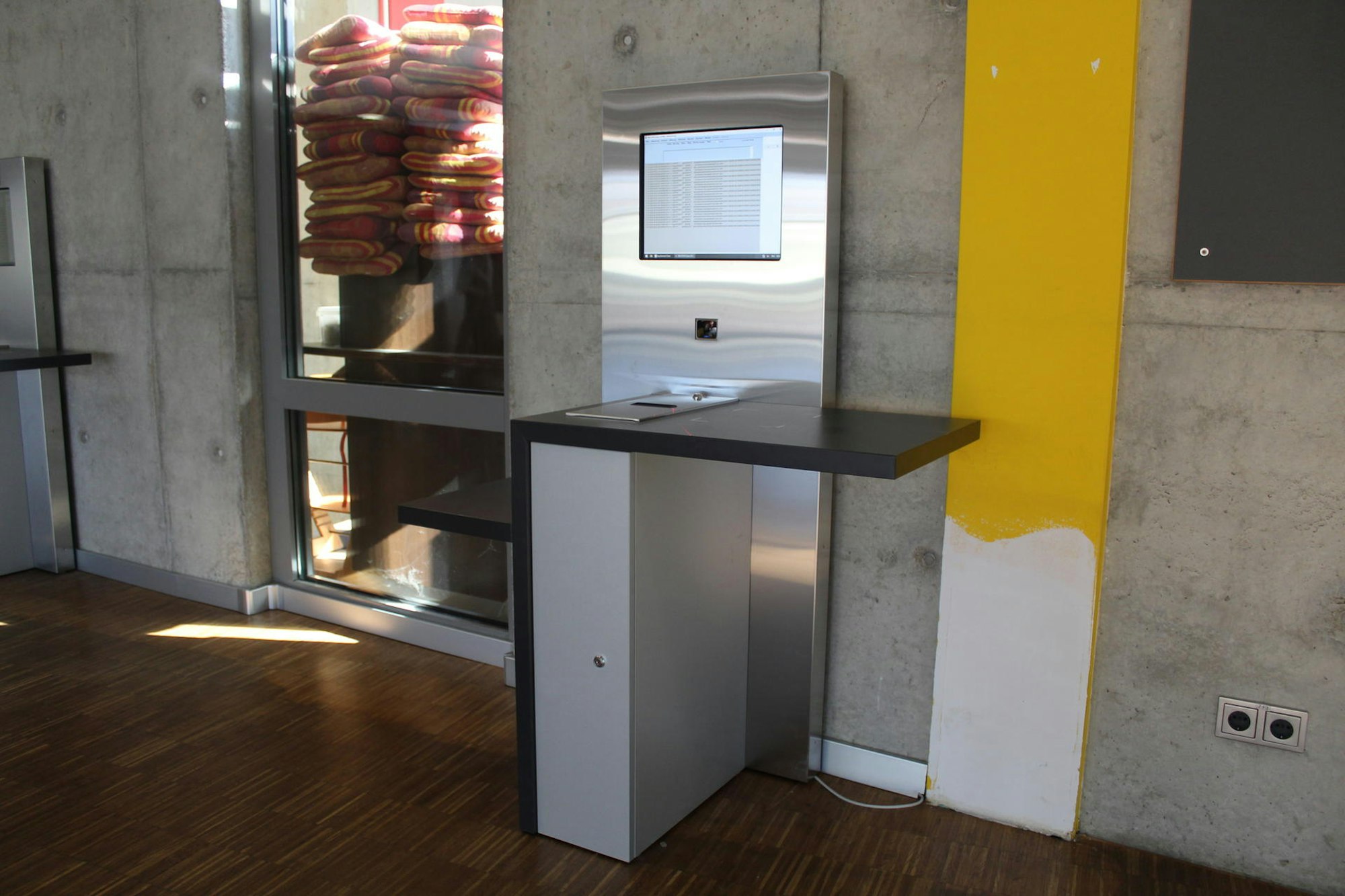 Die Planungen für die Modernisierung laufen schon seit mehr als einem Jahr, erklärt Bibliotheksleiter Wieczorek. 130.000 Euro kostet der Umbau insgesamt, 60 Prozent davon zahlt das Land NRW. Der erste Teil der Modernisierung, der bereits abgeschlossen ist, war die Anschaffung von Automaten zur Rückgabe und zum Bezahlen. Die Geräte stehen links an der Wand. Die Besucher können an ihnen bezahlen und Medien zurückgeben. Dabei hilft ein simpel aussehendes Regal. Seine schwarzen Stellflächen verraten nicht, dass das Regal ein intelligentes Rückgabesystem beinhaltet. Stellen Besucher die Bücher zurück, scannt das Regal diese automatisch und verbucht sie im System. Ein nicht sichtbarer Sensor kann das.