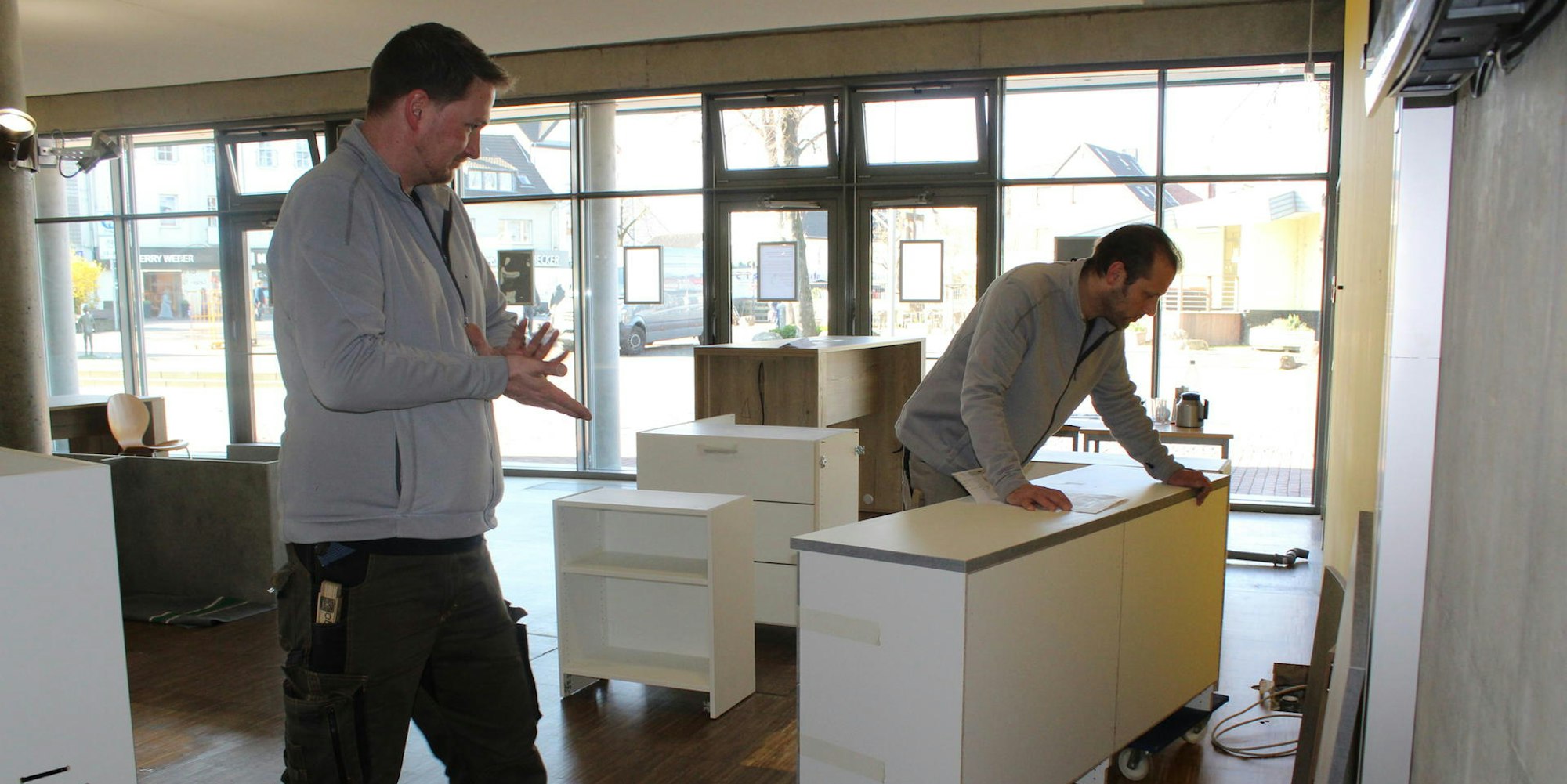 Die ersten neuen Möbel werden in die Bibliothek gefahren.