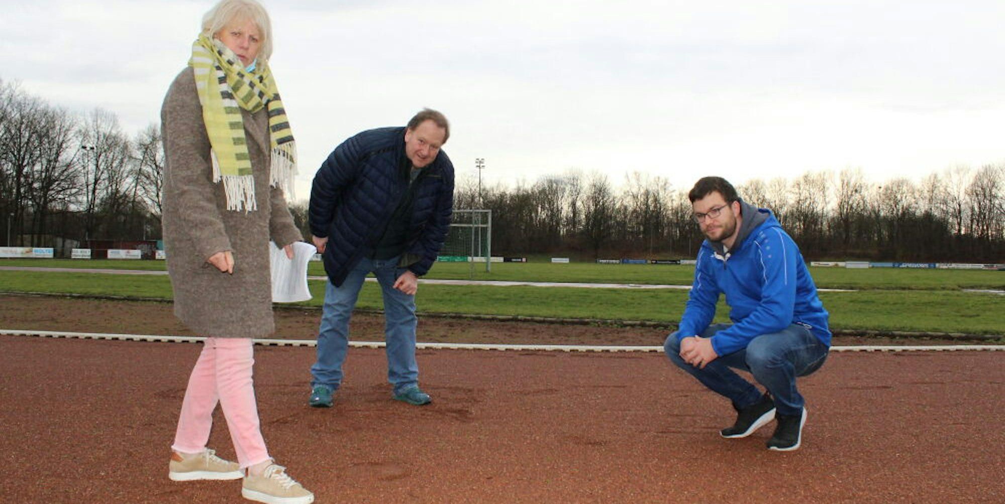 Elisabeth Hülsewig (v. l.), Christian Karaschinski und Marco Schiffer setzen auf eine neue Tartanbahn.