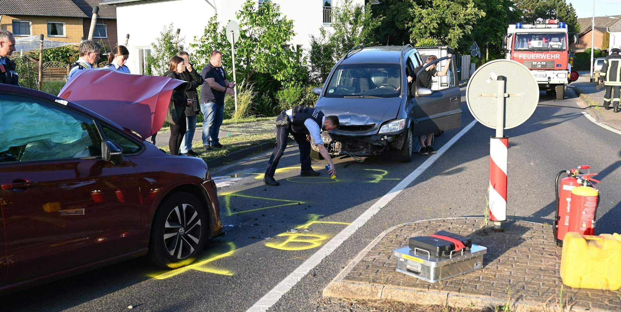 Bergheim-Fliesteden – Für drei Personen endete ein Unfall auf der Landesstraße 93 am Samstagabend (28. Mai) am Ortseingang von Bergheim-Fliesteden im Krankenhaus. Wie die Polizei berichtete, sei eine 68-jährige Bergheimerin gegen 19.30 Uhr mit ihrem Auto aus bisher noch nicht geklärter Ursache, von Büsdorf kommend, nach links von ihrer Fahrbahn abgekommen und auf die Gegenseite geraten. Zur gleichen Zeit kam der Frau ein 57-jähriger Autofahrer aus Bergheim entgegen.