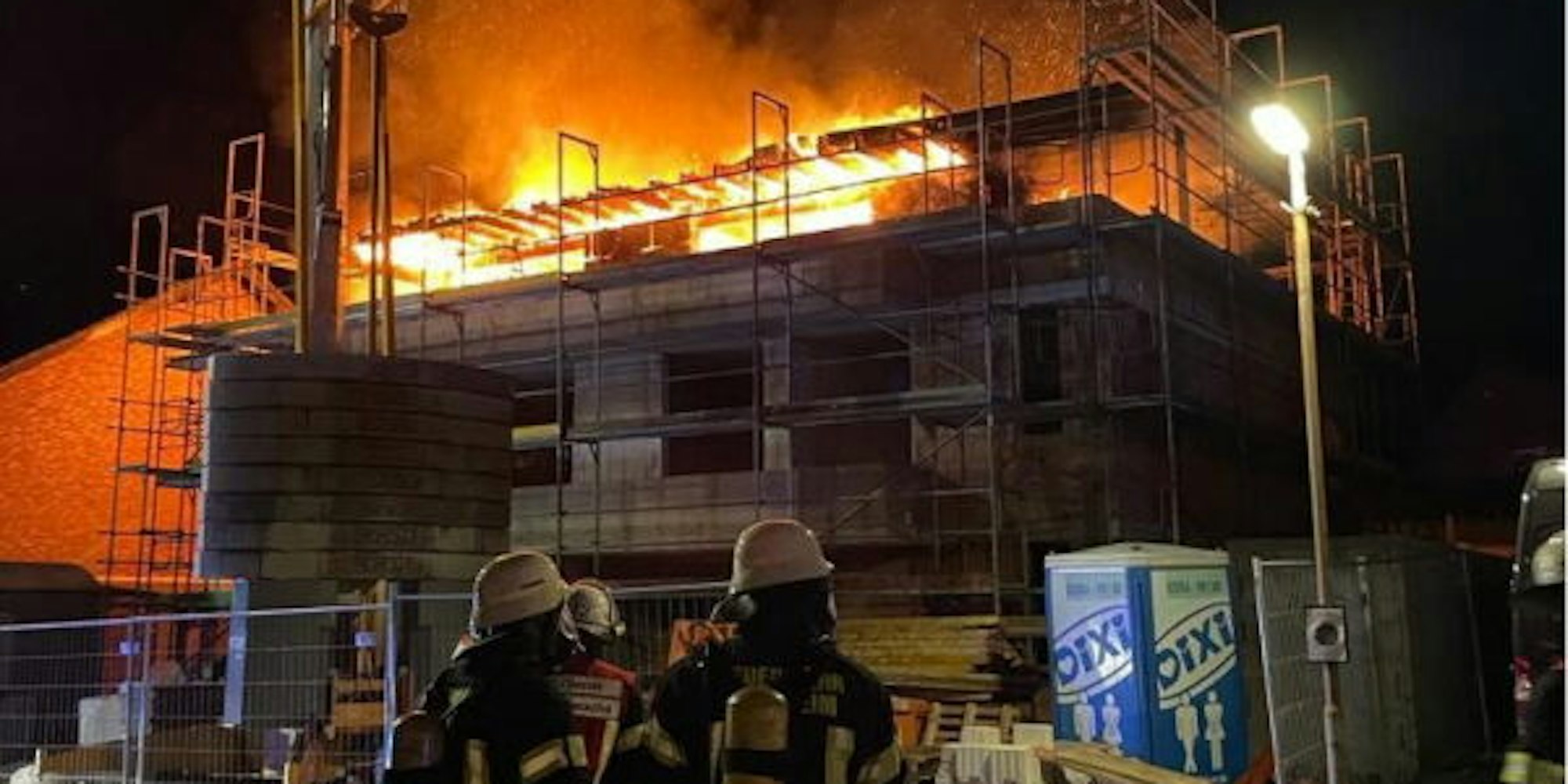 Feuerwehr verhindert SchlimmeresRohbau in Bergheim geht in Flammen auf