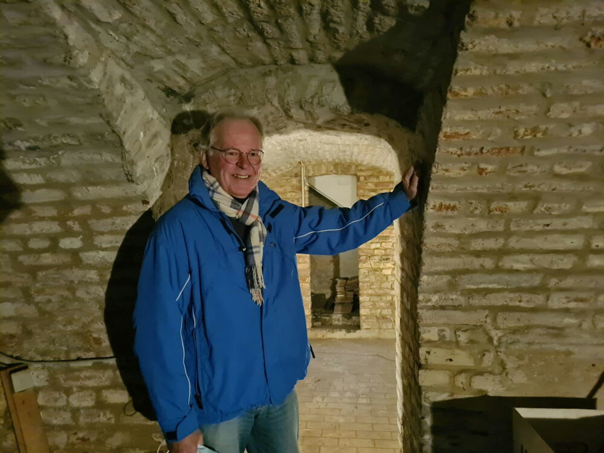 Ortsbürgermeister Johannes Hübner im Gewölbekeller des Ordenshofs in Auenheim.