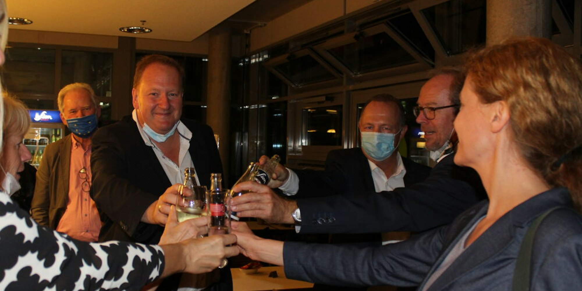 Die CDU bleibt stärkste Kraft in Bergheim und feierte ihr gutes Ergebnis auch mit Bürgermeister Volker Mießeler (2.v.r) in der Medio Lounge.