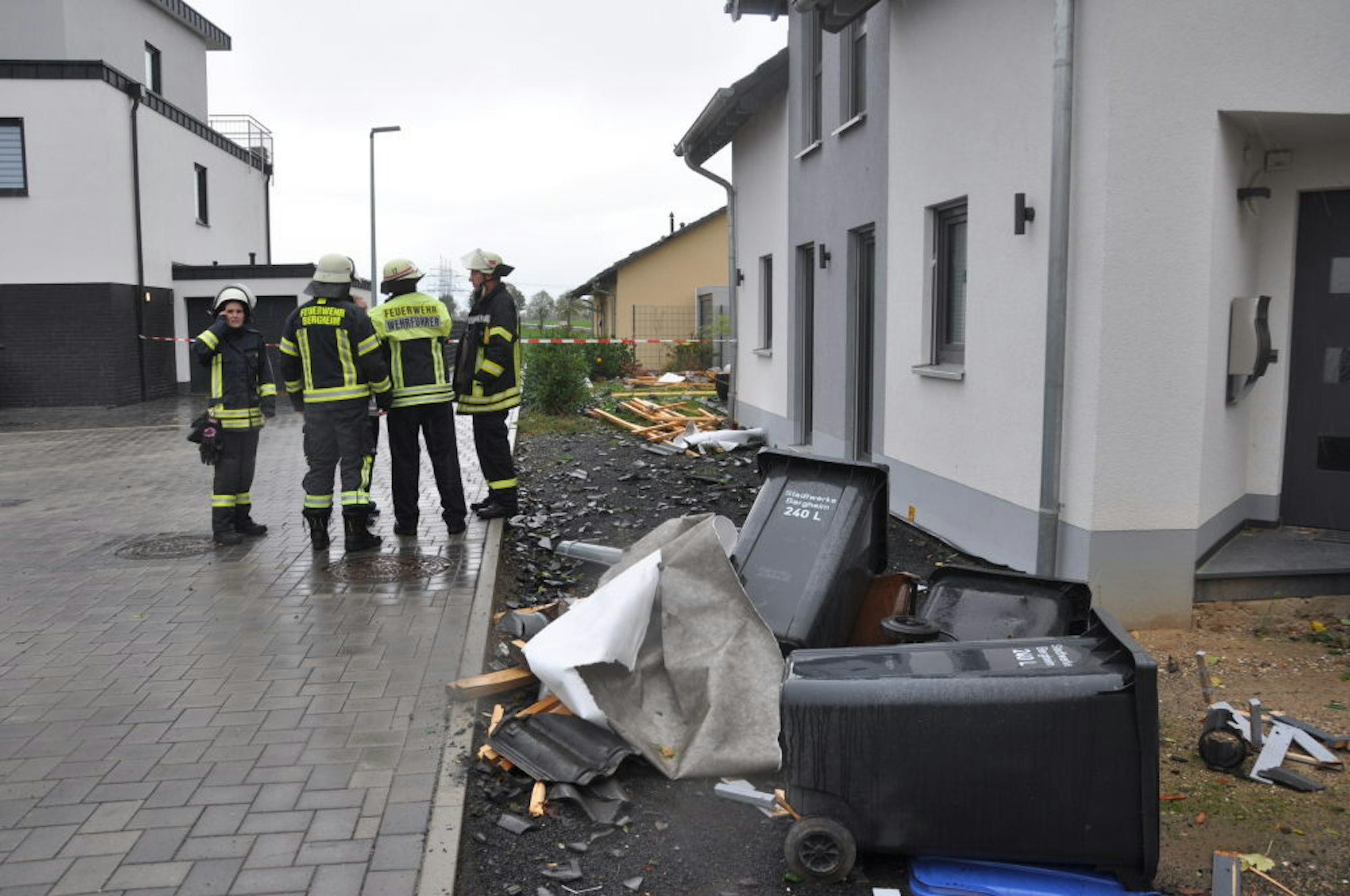 Auf dem Dach des Hauses fehlten nicht nur die Ziegel, auch die Lattung und die Unterspannbahnen waren mitgerissen worden, ebenso wie die metallene Dachrinne. Die Bewohner konnten vorerst bei Nachbarn unterkommen. Ein Dachdecker war bereits eine halben Stunde später zur Stelle. Auch bei anderen Häusern in der Siedlung wurden Ziegel vom Dach gerissen.