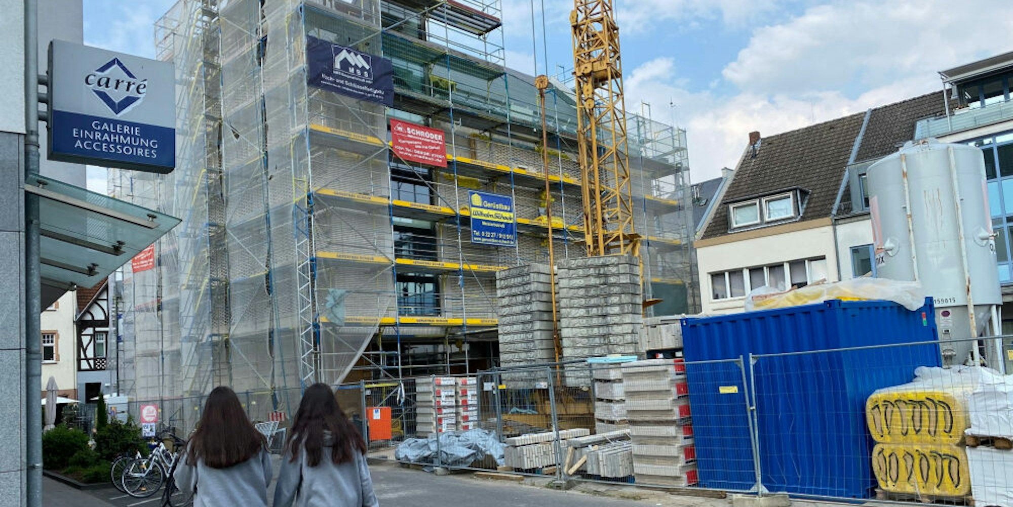 Beim Bau des neuen Rathausanbaus droht offenbar erneut eine Verzögerung. Der Janshof bleibt damit vorerst ein Materiallager.