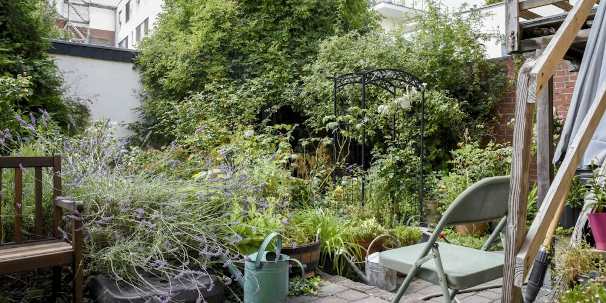 Nein, mit der Nagelschere wird der kleine Garten hinter dem alten Jugendstilhaus nicht gepflegt. Zwölf mal zwölf Meter, mehr ist es nicht, mit Sicht auf die grünspanbedeckte Zwiebel der Kapelle des Marienhospital. Ein bisschen Weiß noch zeigt sich von der Fassade des Anbaus von der grünen Blechsitzfläche des Klappstuhls aus.