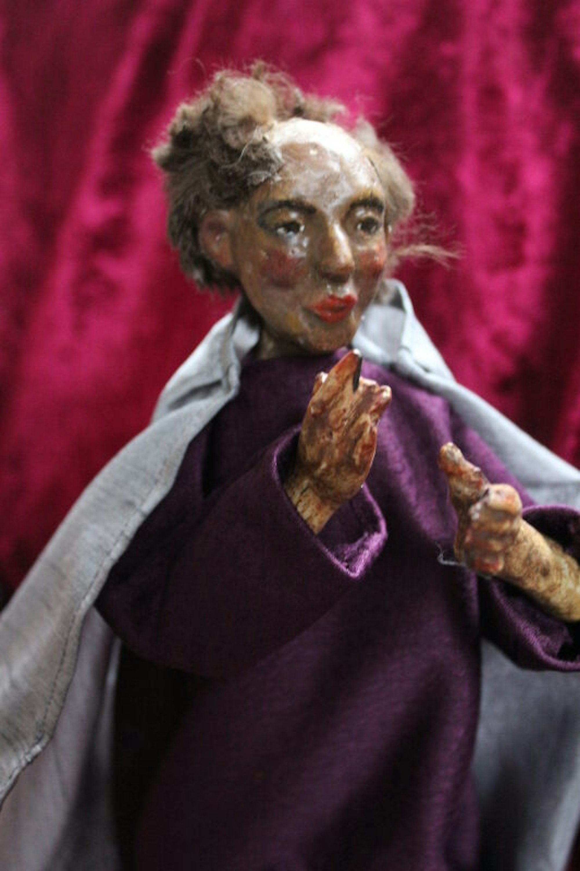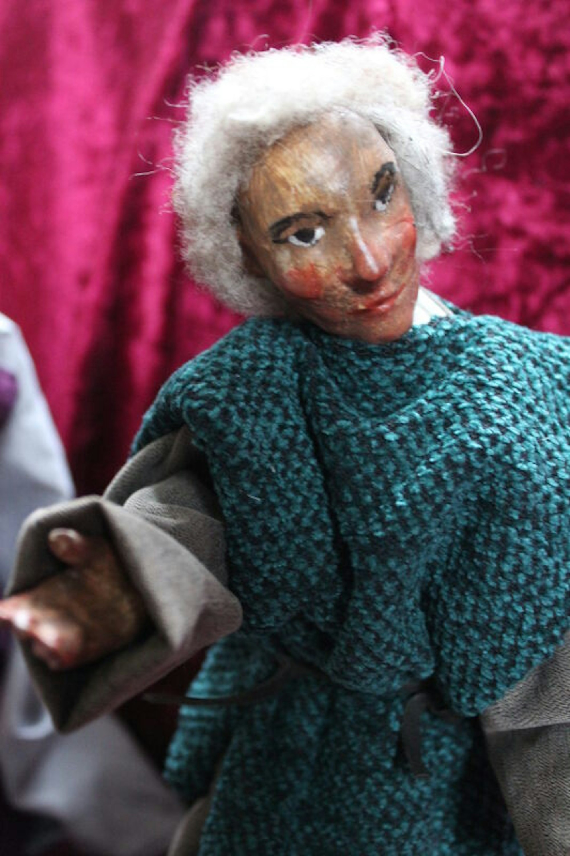 Aus einer Mischung von Sägespänen und Leim hat die Künstlerin sie modelliert, möglicherweise hat sie sogar Fragmente der alten Figuren verwendet. Ob sie auch die Kleidung gefertigt hat, ist allerdings fraglich.