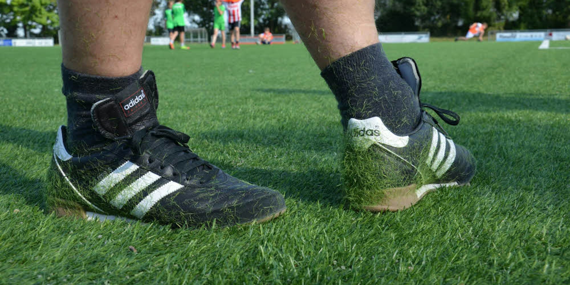 Brühl-Schwadorf – Noch sind keine kahlen Stellen zu sehen. Doch der Schwund ist offenkundig. Wer auf dem Platz des FC Schwadorf Fußball spielt, nimmt immer ein wenig Kunstrasen mit nach Hause. Abgebrochene, elektrostatisch aufgeladene Halme haften zu Hunderten an Schuhen, Stutzen, Hosen und Trikots der Spieler.