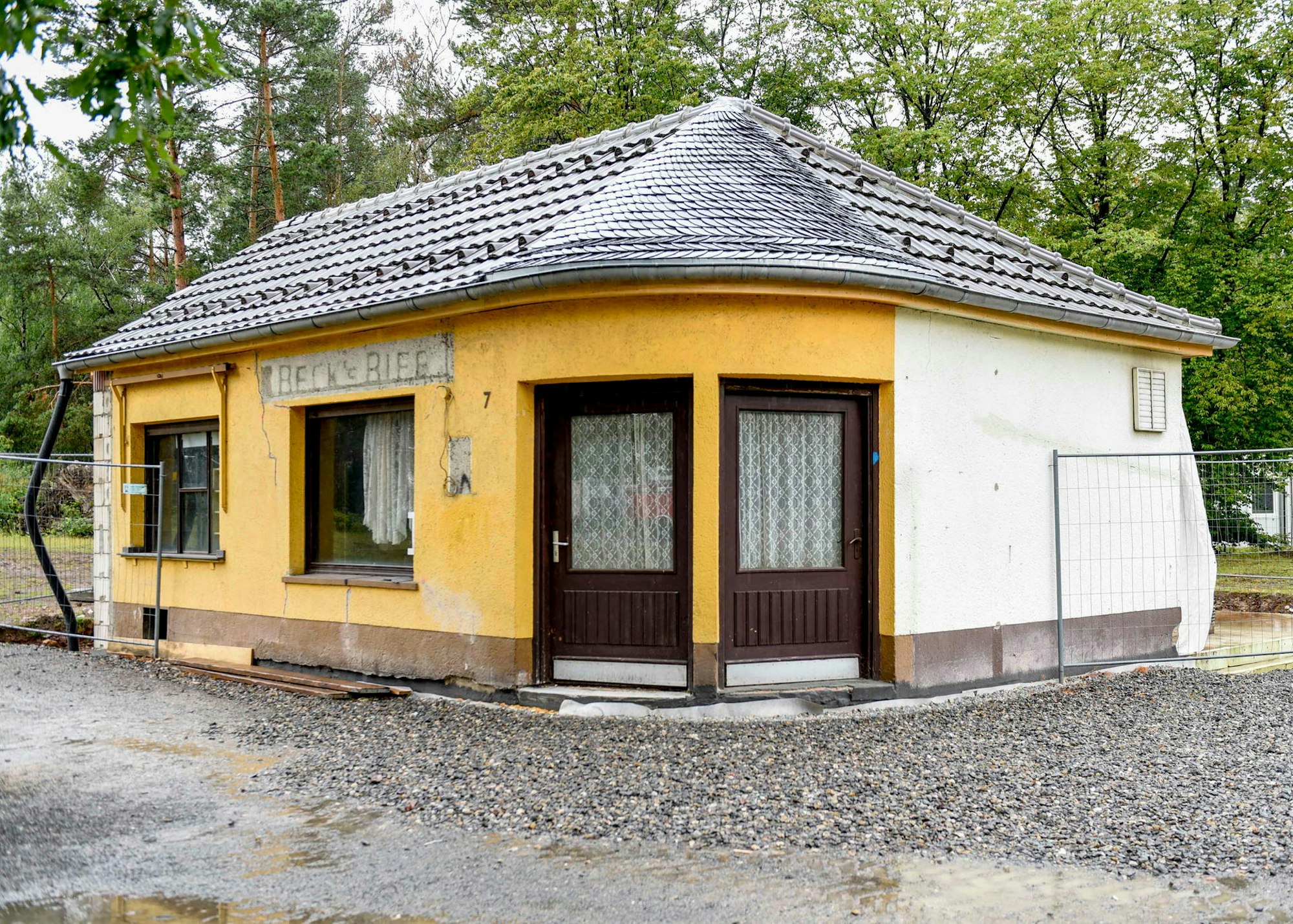 Und noch eines habe der Umzug zutage gefördert, den das Gebäude übrigens in gutem Zustand überstanden habe. Ein paar wenige Risse seien im Mauerwerk entstanden. Und in der Wand zur ehemaligen Parkplatzseite hin zeichneten sie genau die Form eines Kreisbogens. Es sei der Ausschnitt einer zum damaligen Zeitgeist passenden Tür, die die Familie Eich mit Blick auf eine Erweiterung der Milchbar schon eingerichtet habe, nämlich die Tür zu einem geplanten Saalanbau.