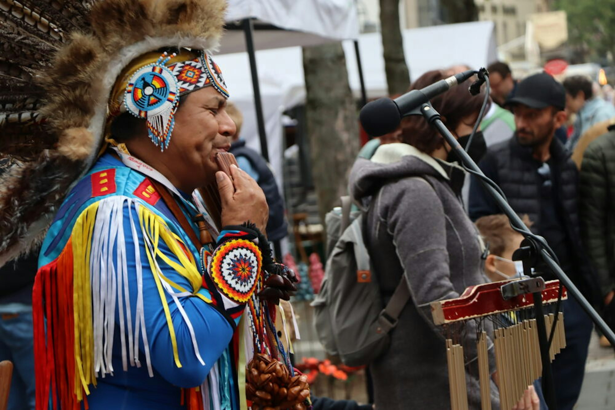 In seiner traditionellen Kleidung aus Ecuador ließ Guaytcama seine südamerikanischen Instrumente erklingen.