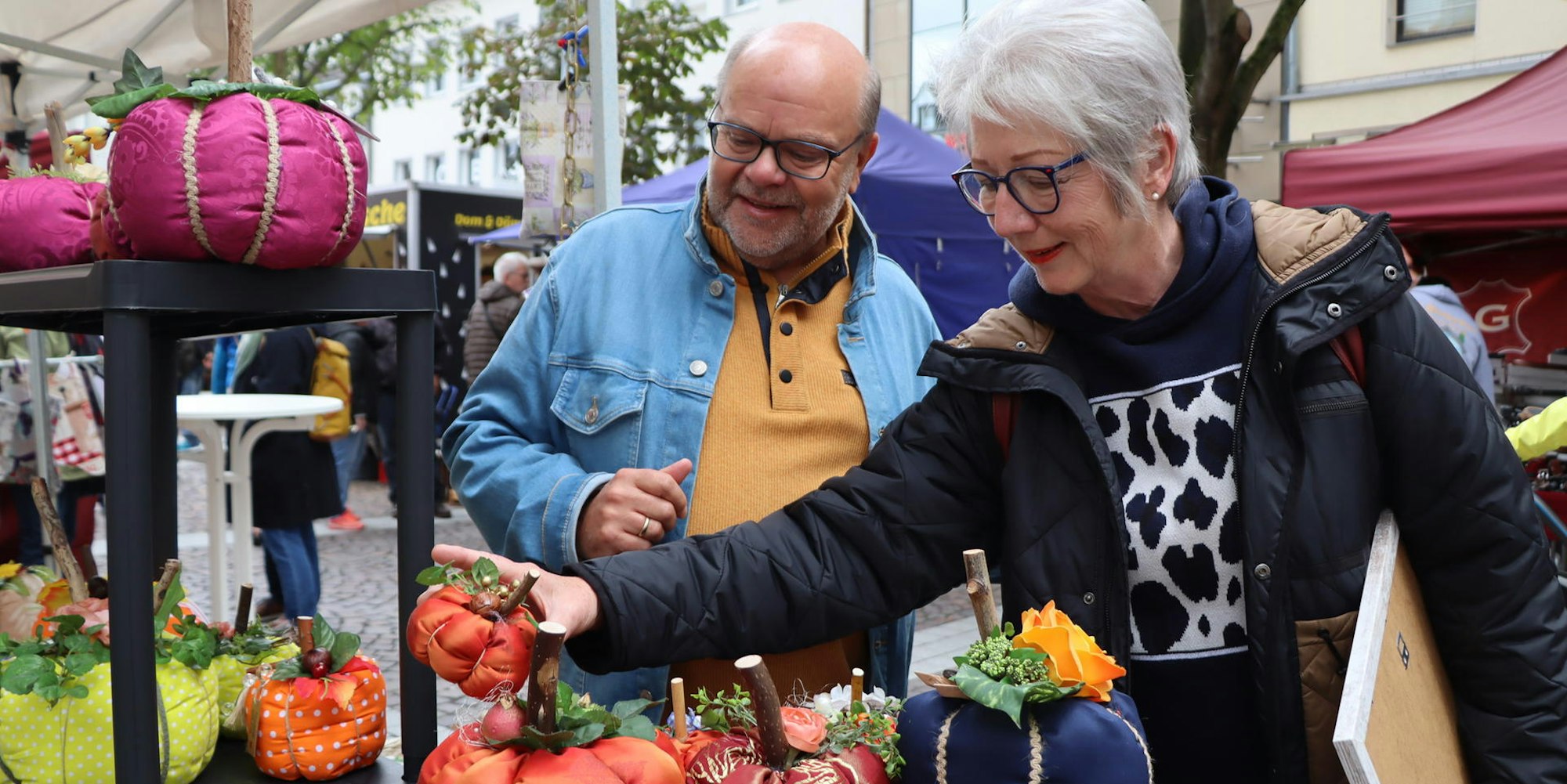 Und auch ihnen gefiel das Sortiment, dass die Ausstellerinnen und Aussteller am Wochenende präsentierten. „Die Qualität der Waren scheint wirklich hochwertig zu sein“, meinte Elke Müller, als sie sich die aus Stoff genähten Kürbisse ansah. „Das gesamte Sortiment hat meine Freundin Eva Tauwaldt aus Köln geschaffen“, berichtete ihr Händlerin Gaby Döring.