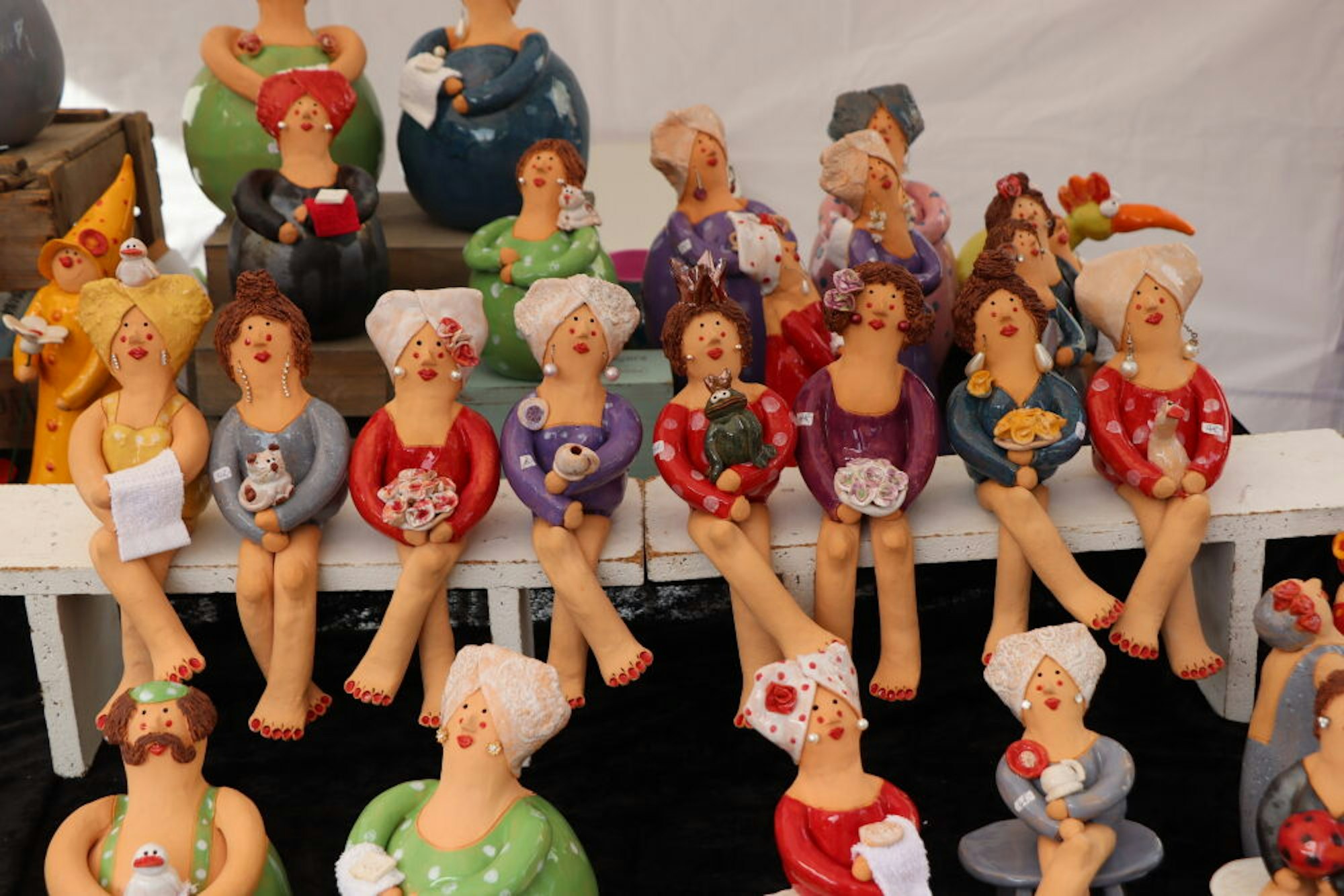 Da saßen sie wieder, die wohlproportionierten Keramik-Madämchen der Brühler Keramikerin Gisela Sohns.
