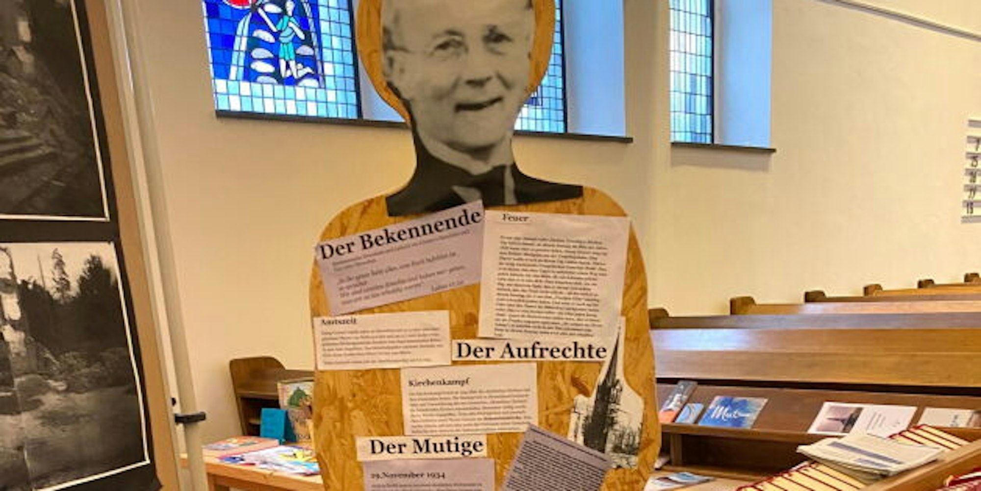 Weiterhin sind in der neuen Ausstellung Teile der ehemaligen Kanzel zu sehen. Bisher befanden sich diese in der Johanneskirche, die in diesem Jahr abgebrochen wurde. Eine Stele ist Pfarrer Grosser (1885-1964) gewidmet, der hier wirkte, sich gegen die Nazis zur Wehr setzte und Ehrenbürger der Stadt Brühl wurde.