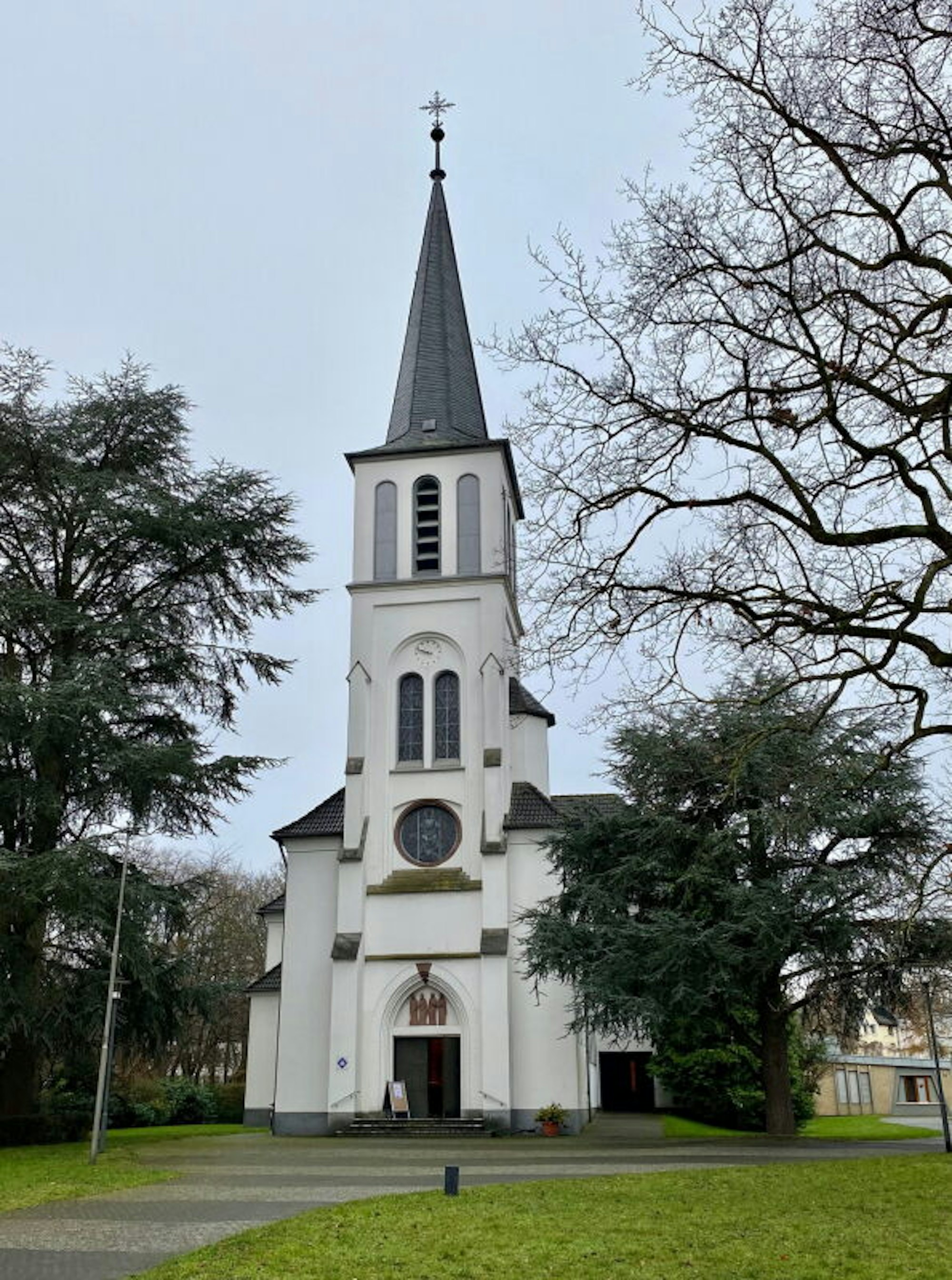 Die evangelische Christuskirche in Brühl wurde nach dem Krieg wieder aufgebaut.