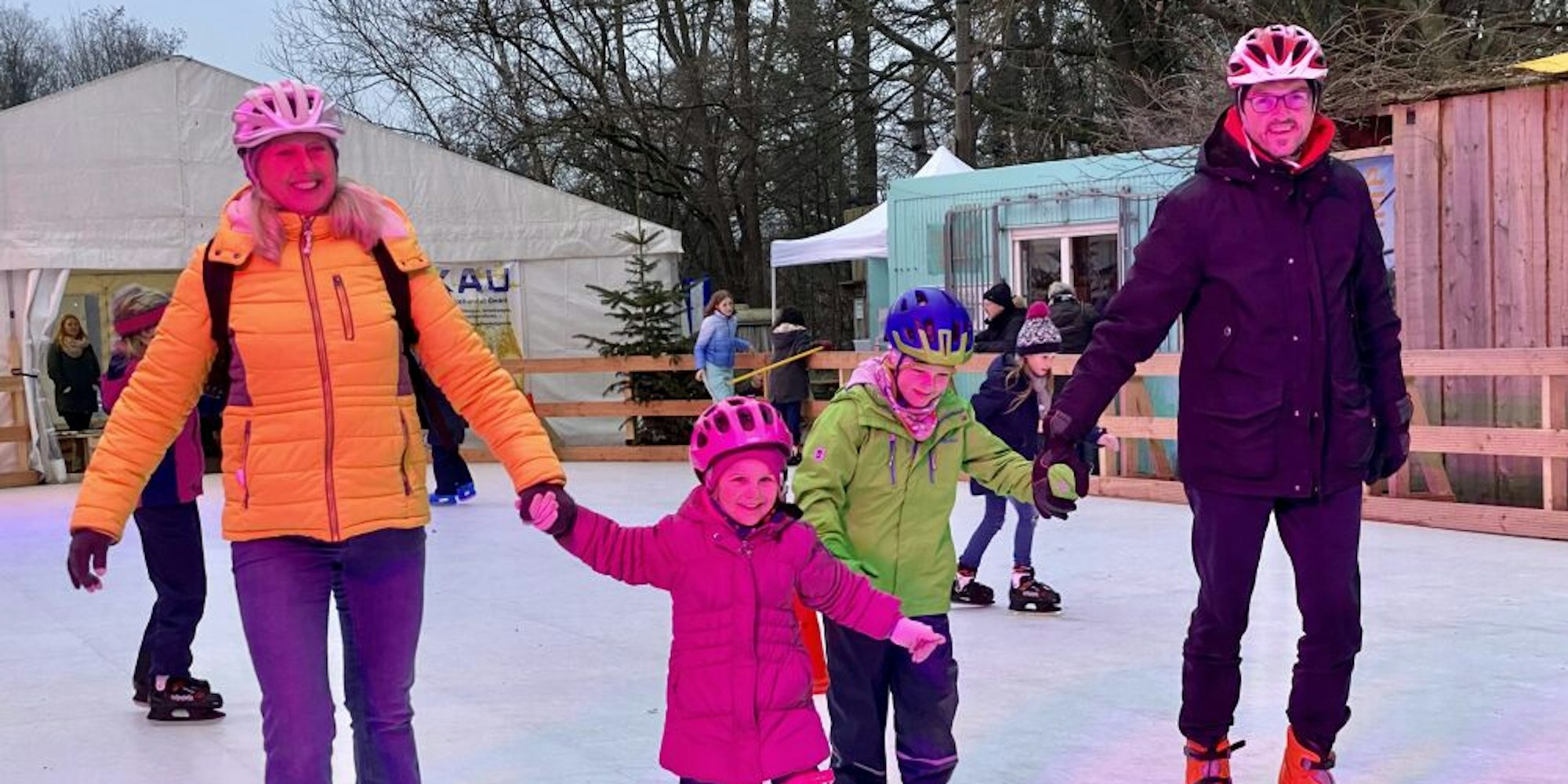 Spaß auf der Schlittschuhbahn hatten Ulrike Berger und ihre Tochter Merle sowie Christoph Münchmeier.