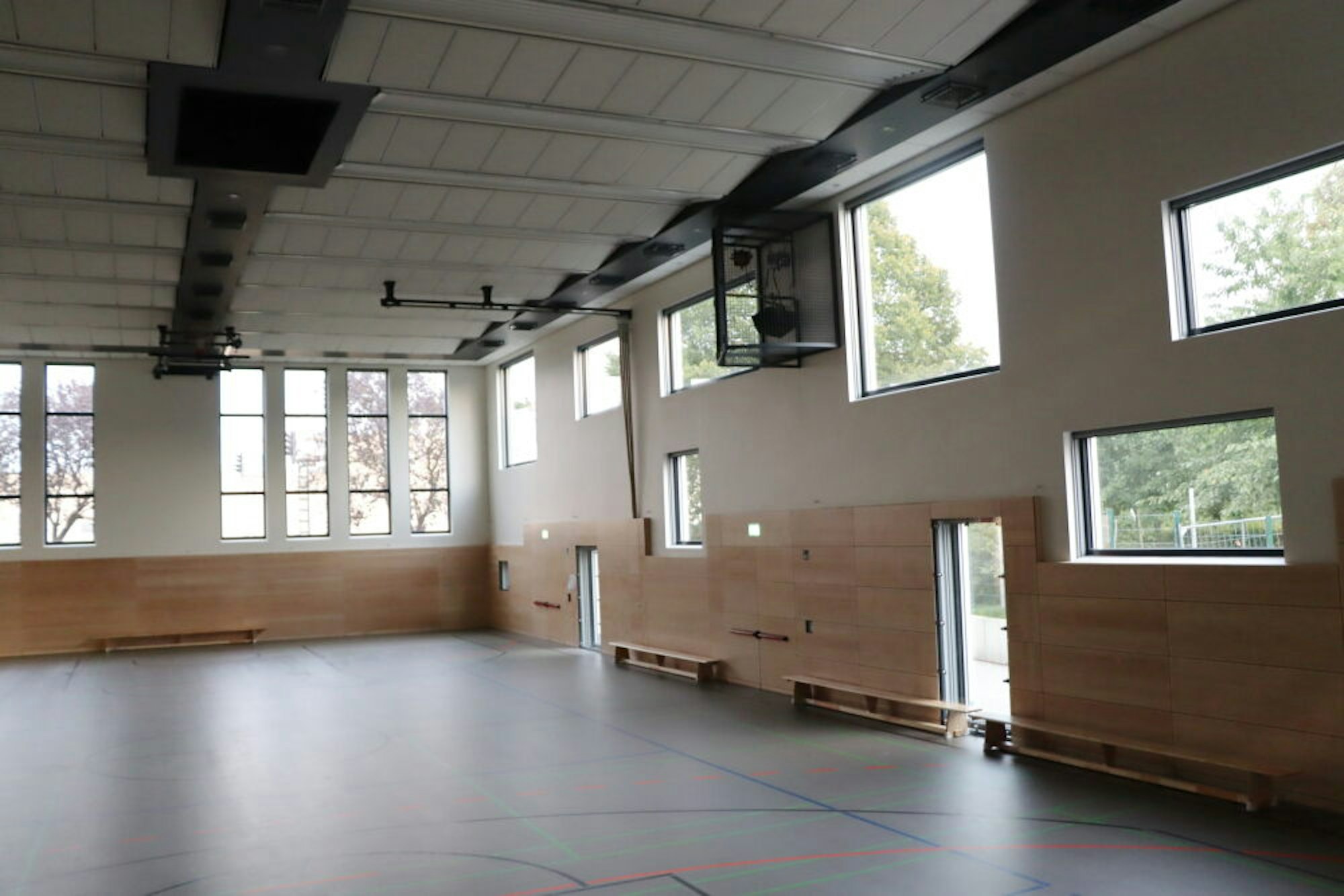 Die großen Fenster der neuen Multifunktionshalle des Clemens-August-Campus sorgen für Helligkeit und ermöglichen den Blick nach draußen.