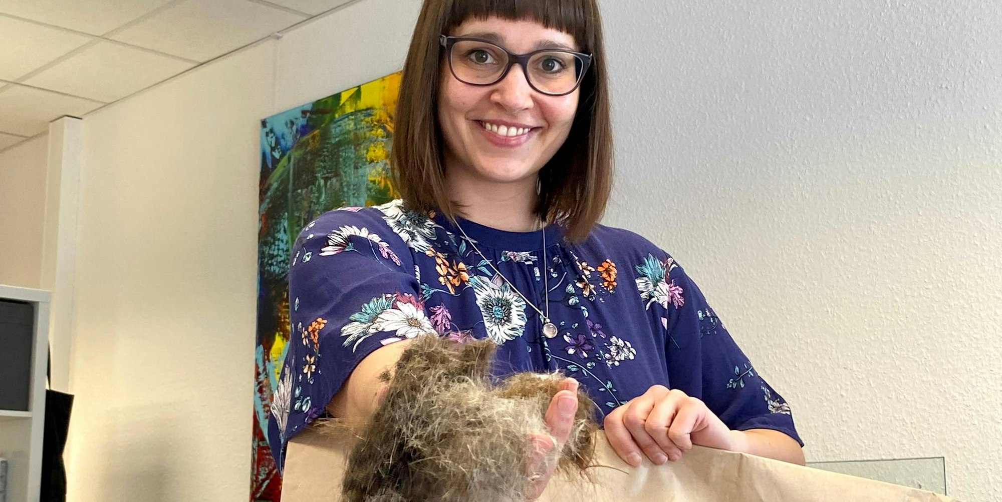Christin Wosnitzka sammelt abgeschnittene Haare.