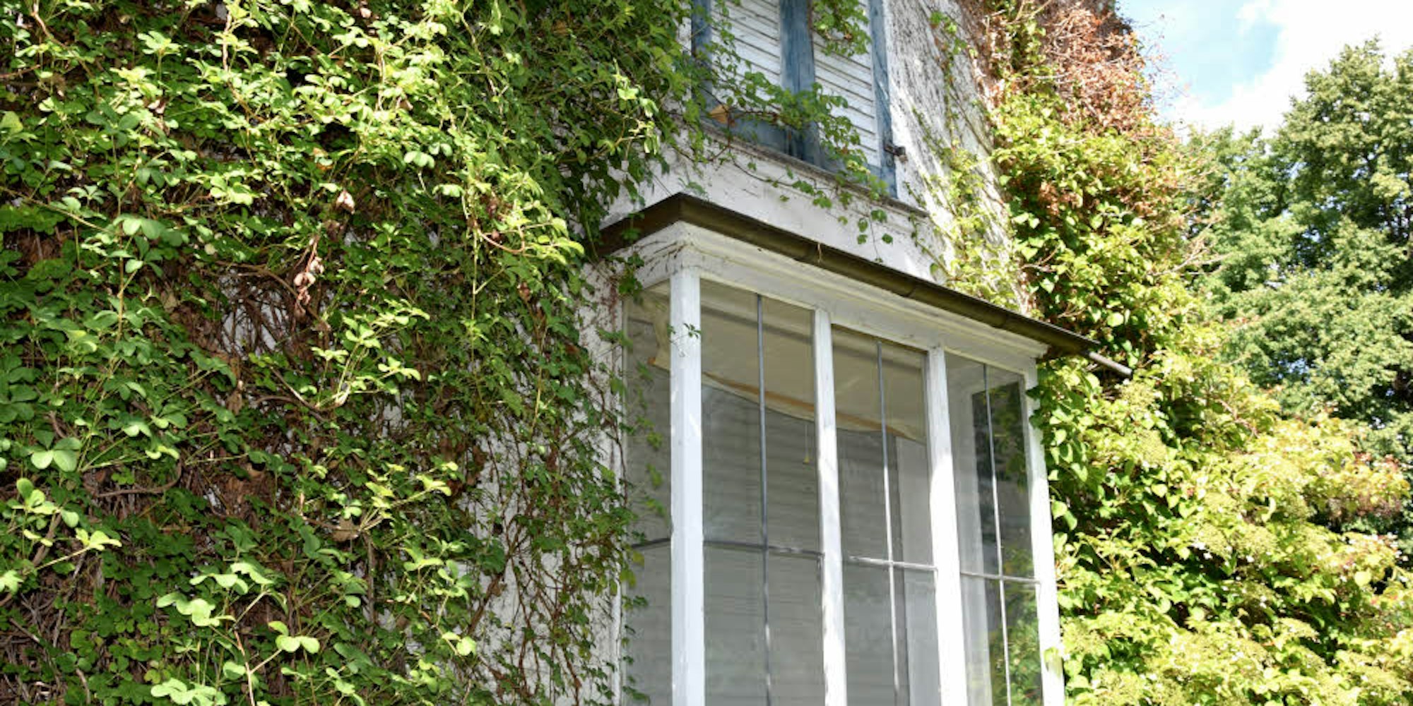 Noch ist die Fensterfront des Max-Ernst-Kabinetts zum Garten hin zugewuchert.