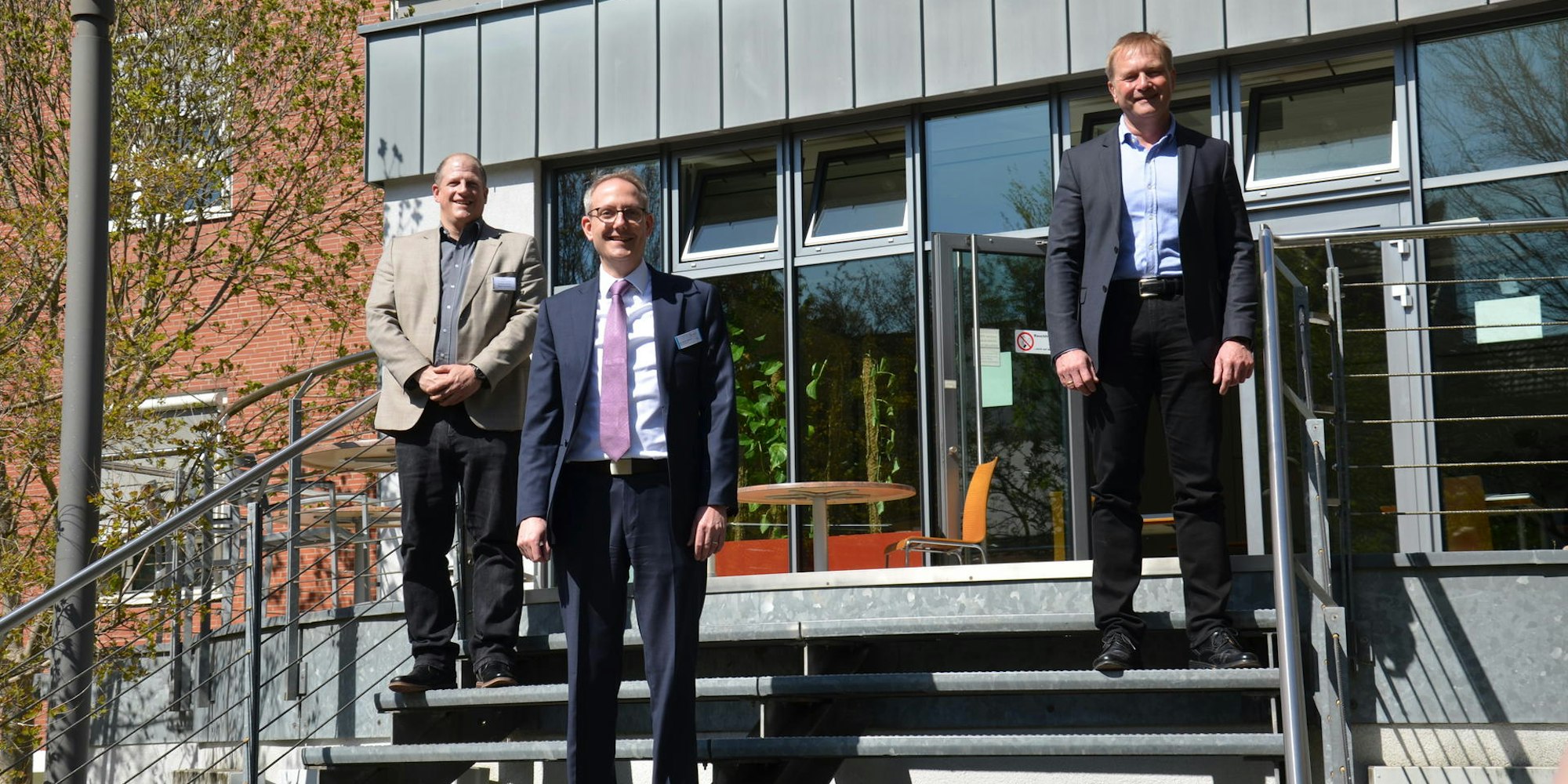 Jan Patrick Glöckner (Mitte) ist der neue Geschäftsführer des Marienhospitals Brühl. Er löst Andreas Heuser (l.) ab.