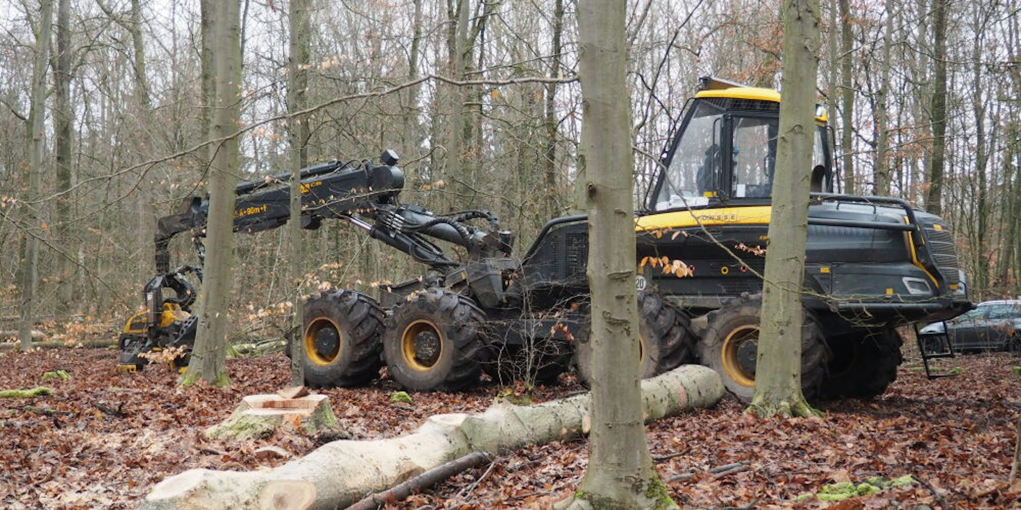 Brühl – Das Ungeheuer hat Pause. Der große Greifarm ist entspannt gesenkt, die acht Räder stehen still. Ein schwarz-gelber Fremdkörper im Ville-Wald, der, wenn er in Aktion ist, Lärm macht und stinkt. Und der doch dafür sorgen soll, dass der Wald gedeiht, dass große Buchen ihre Kronen ausbreiten können und dass darunter der Nachwuchs eine Chance hat.