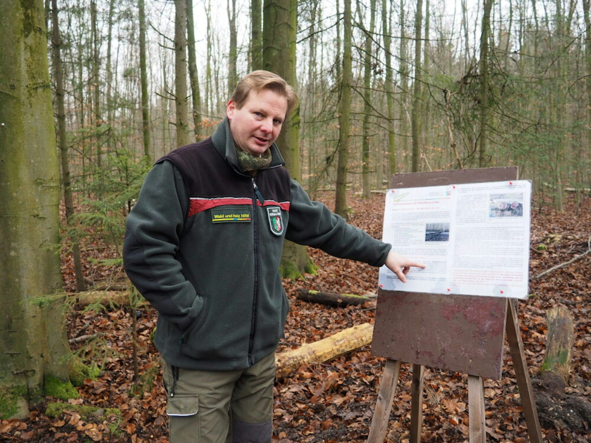 Revierförster Frank Pechtheyden hat Schilder aufgestellt, um die Spaziergänger über die Arbeiten zu informieren.