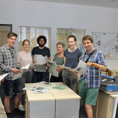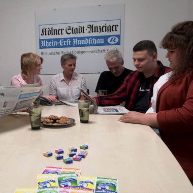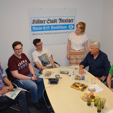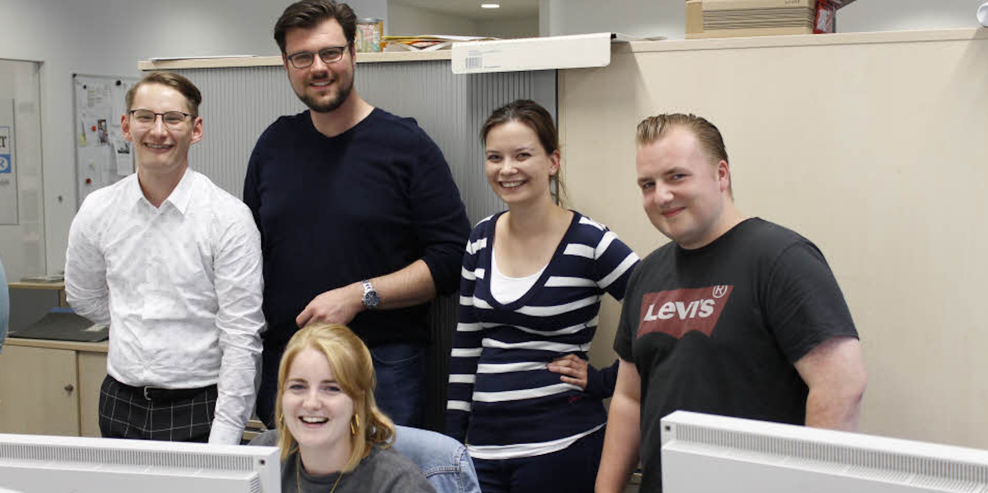Die Jungen Liberalen blickten in Brühl hinter die Kulissen der Redaktion und präsentierten sich im Interview. Steffan Brochhaus, Harald Reuter, Kathrin Klein und Henrik A. Müller-Pleuß (v. l.) standen Volontärin Sarah Herpertz (vorn) Rede und Antwort.