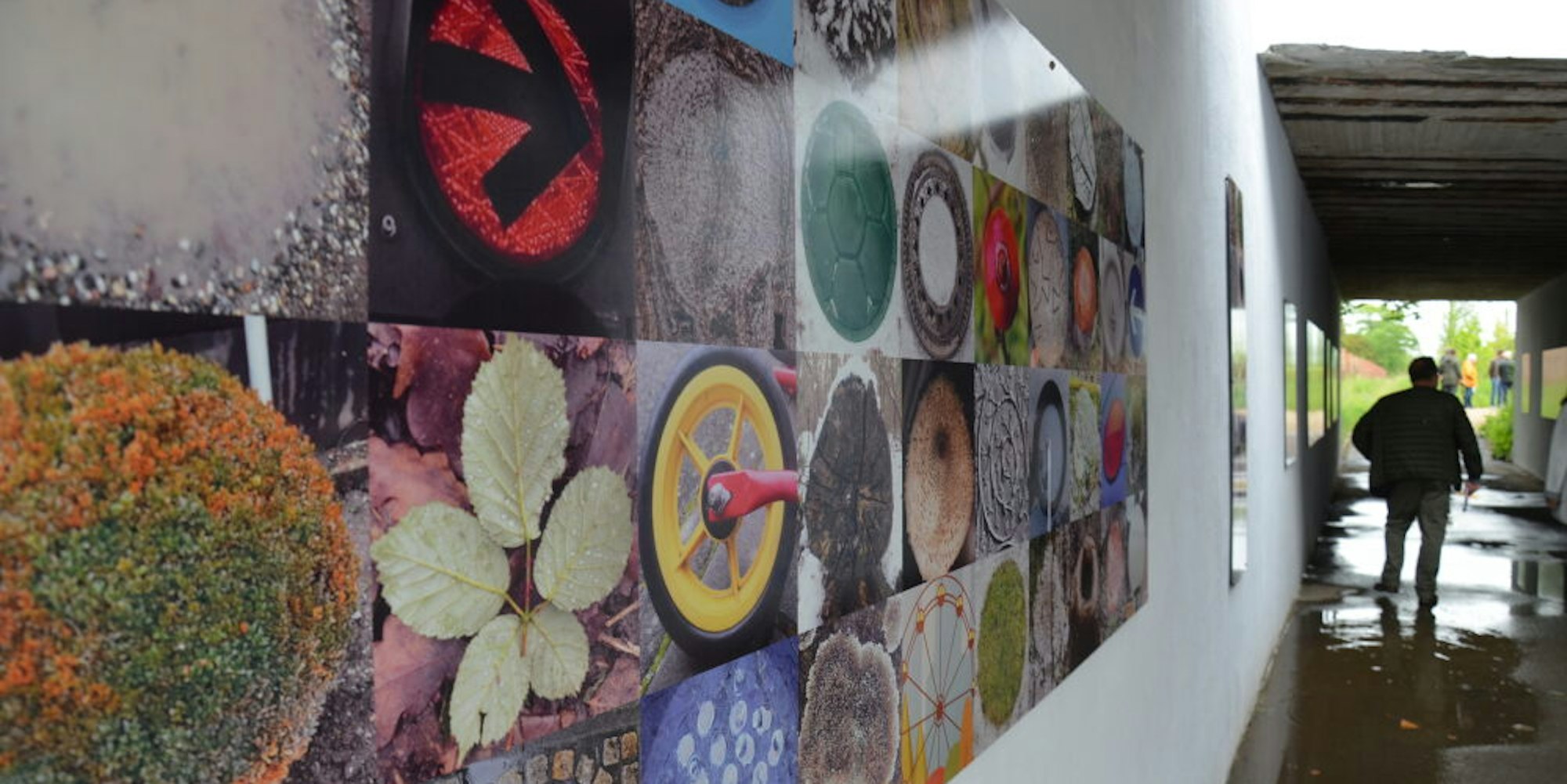 Zu sehen sind Zusammenstellungen von Bildern, die allesamt in der Stadt aufgenommen wurden – und ausschließlich kreisförmige Motive zeigen. Auf der einen Tunnelwand wurden Fotocollagen angebracht, die Gullideckel, Blüten, Verkehrsschilder, Ampellichter und Pfützen zeigen, auf der anderen Wand wurden Detailaufnahmen aus den Schlössern gemeinsam arrangiert, um der Unterführung zumindest ein wenig Glanz zu verschaffen.