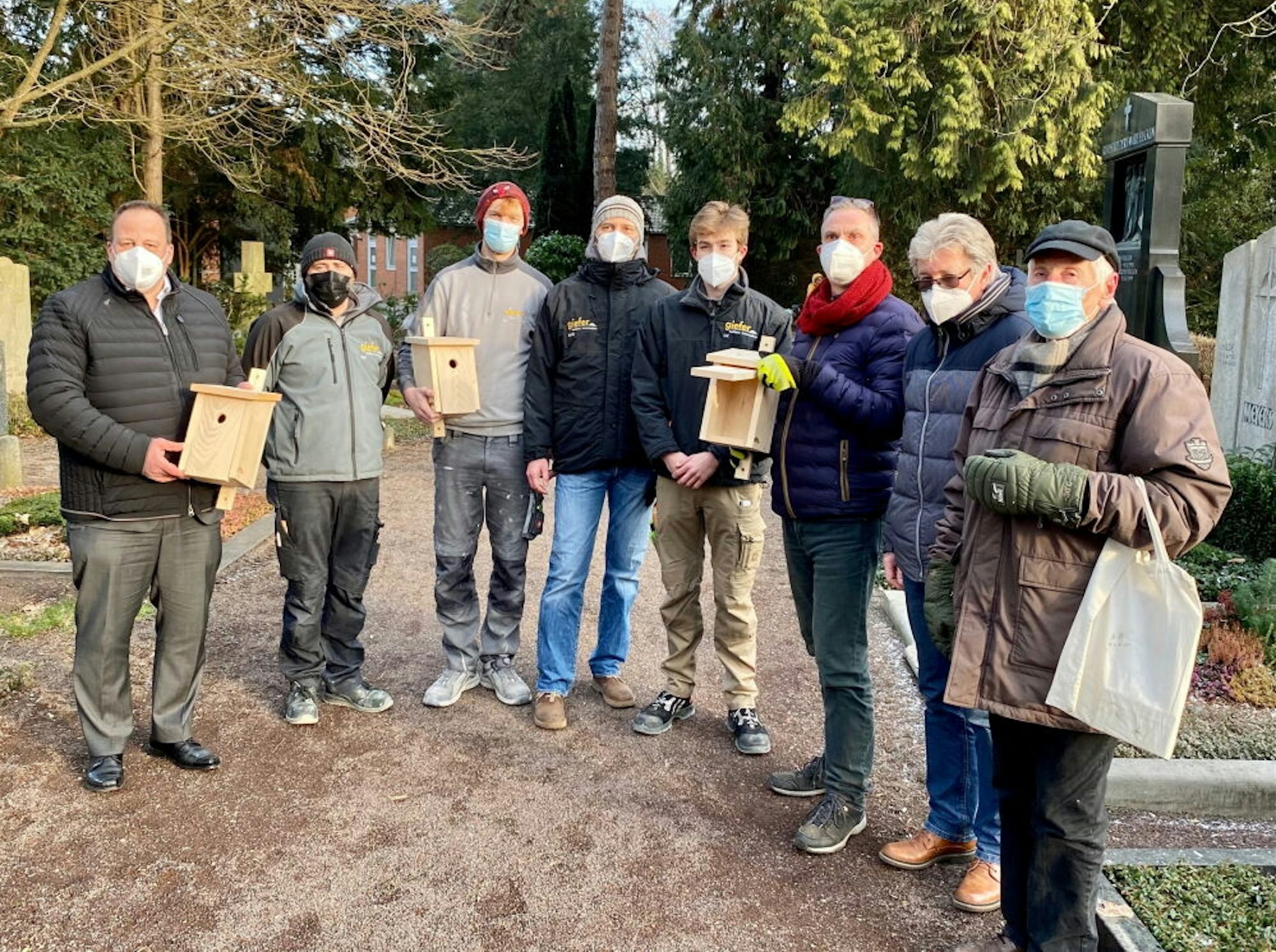 Mitarbeiter der Tischlerei Giefer und Vertreter das Nabu und des Stadtservicebetriebes freuten sich über die neuen Nistkästen.