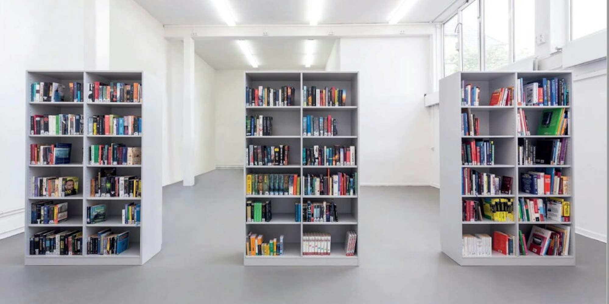 In dieser Rauminstallation rekonstruiert Belia Brückner den aktuellen Buchbestand der Jugendstrafanstalt Hahnöfersand.