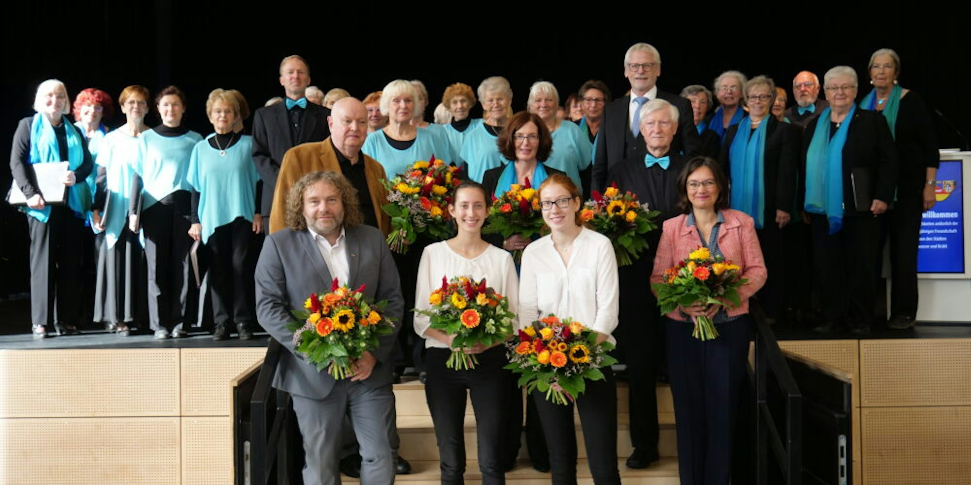Brühl – Anlässlich der über 30-jährigen Städtefreundschaft zwischen den Städten Brühl und Weißwasser wurde im Clemens-August-Forum in Brühl die Partnerschaft mit einem bunten Bühnenprogramm gefeiert. Unter den Augen von Brühls Bürgermeister Dieter Freytag, Weißwassers Oberbürgermeister Torsten Pötsch und einigen Mitgliedern der jeweiligen Stadtverwaltungen führten unter anderem der Stadtchor Weißwasser und die Brühler Chorvereinigung, die ihre musikalische Partnerschaft ebenfalls am vergangenen Wochenende zelebrierten, mit gemeinsamen Beiträgen durch die Veranstaltung.