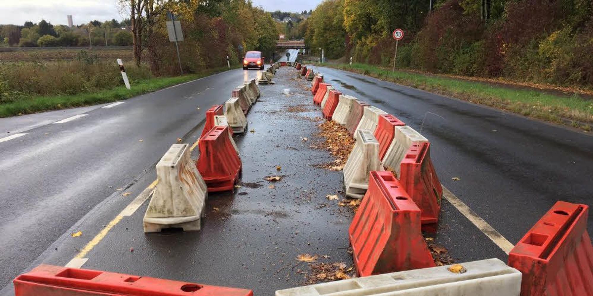 Die Kunststoffbarrieren auf der Otto-Wels-Straße vor der Einfahrt zur Gesamtschule sollen ersetzt werden.