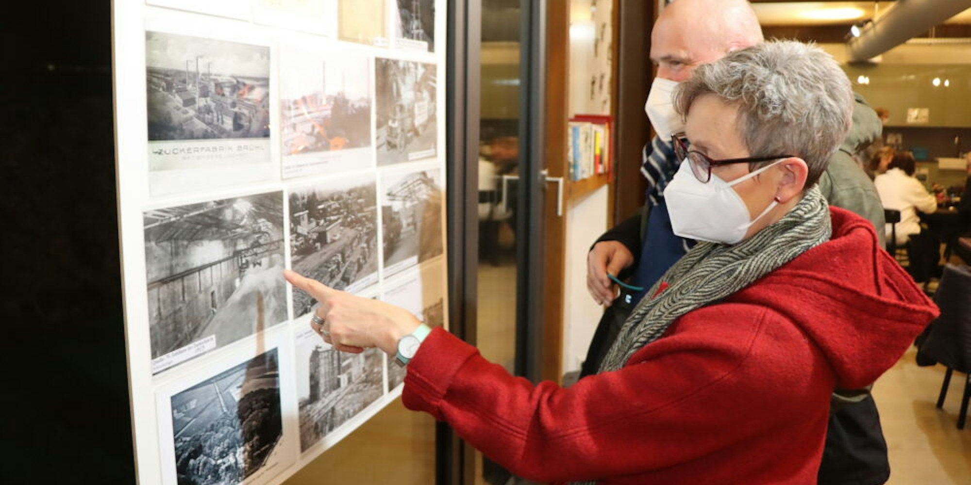 Danke sagte auch Bürgermeister Dieter Freytag der Ortsgemeinschaft Brühl-Ost, dem Hausherrn Volkmann, der Kuratorin und auch Evi Gelath. „Wie ich erfahren habe, kamen während der Recherche zur Publikation nicht nur viele interessante Exponate zusammen, sondern es entstand eine regelrechte Sammlung zur Arbeitswelt und zum Leben von und mit der Zuckerfabrik“, so Freytag.