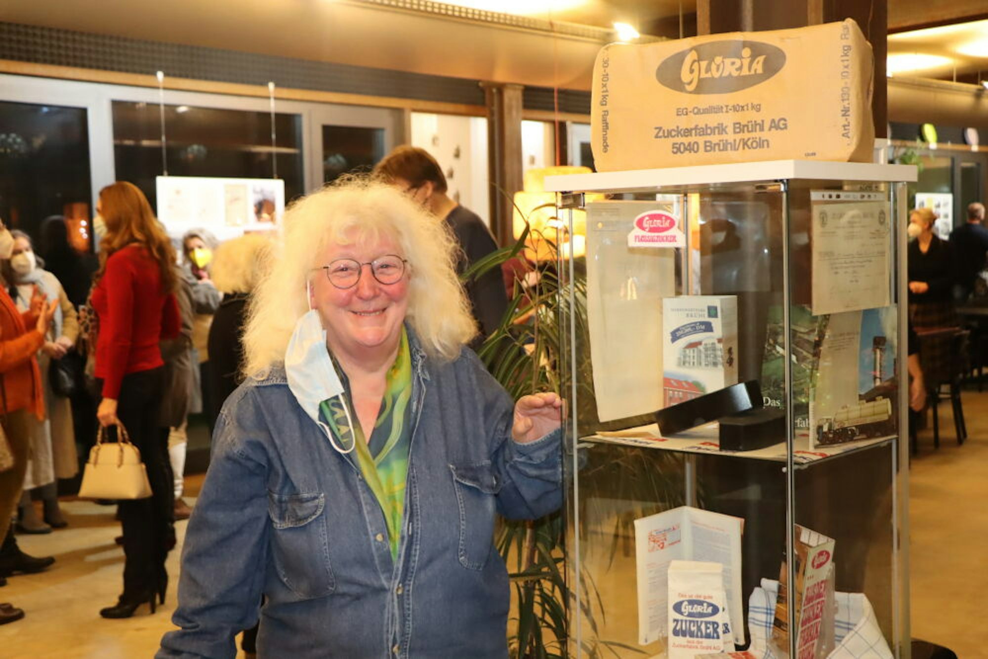 In ihrer Begrüßung dankte Zimmermann allen Organisatoren, die geholfen hatten, die vielen kleinen und großen Schätze für die Ausstellung zusammenzutragen. Besonderes hob sie dabei das Engagement der ehemaligen Mitarbeiterin der Zuckerfabrik Evi Gelath hervor, die zusammen mit Rainer Kröner auch das Buch „Die Zuckerfabrik in Brühl – hier schlug einst das Herz von Brühl-Ost“ geschrieben hat.