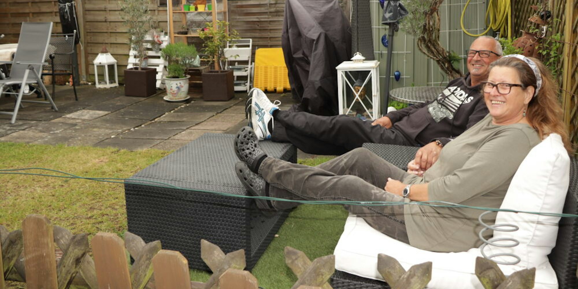 Josef und Conny Sewell sind Dauercamper am Heider Bergsee in Brühl. In ihrem kleinen Garten genossen sie am Wochenende die regenfreien Phasen.