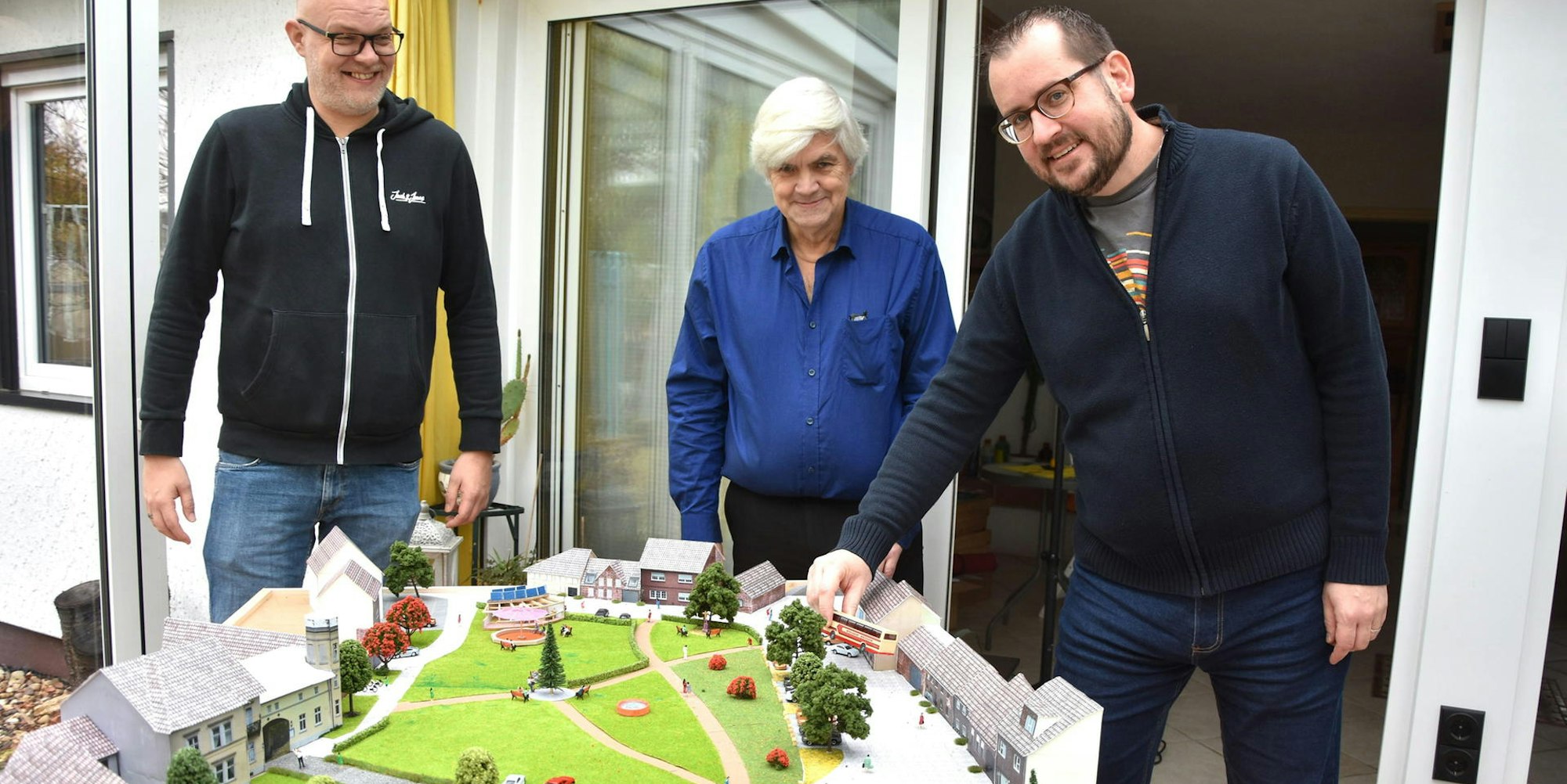 Ein Modell des Platzes am Prömpershof präsentieren Lars Roob, Friedhelm Vieth und André Cizmowski.