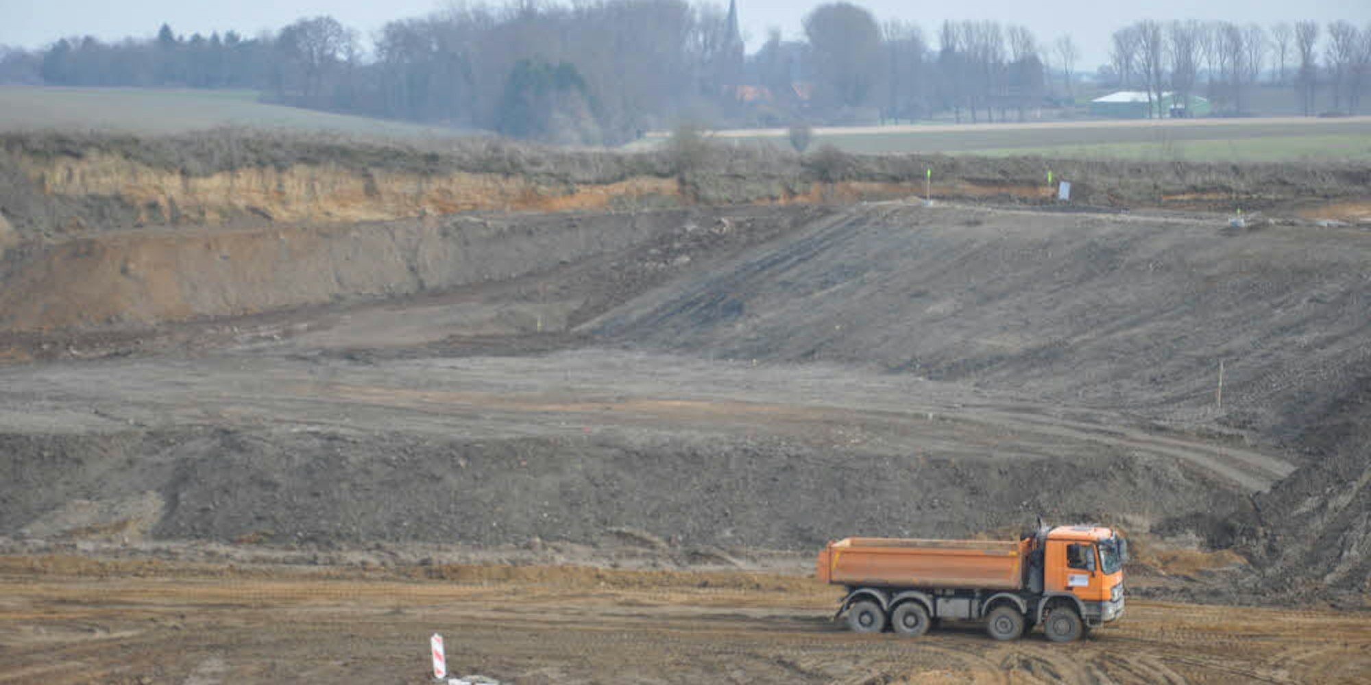 Neben der bestehenden Kiesgrube in Sichtweite zu Oberembt (Hintergrund) will der Betreiber, die Firma Kieswerk Bettenhoven, in einigen Jahren ein weiteres Abbaufeld einrichten.