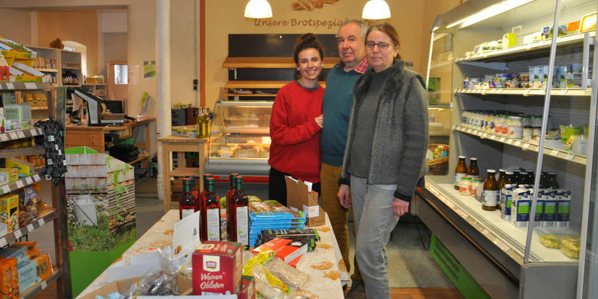 Ein Lebensmittelvollsortiment in Bioqualität boten Katharina und Peter Hanen, hier mit Tochter Karlotta, in ihrem Hofladen in Niederembt.