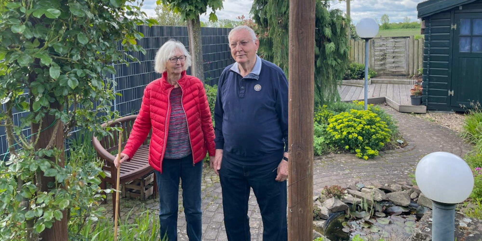 Stolz auf ihren hübschen Garten sind Lilo und Gerhard Schulze. Hinter der Holzkonstruktion beginnt der gepachtete Teil.