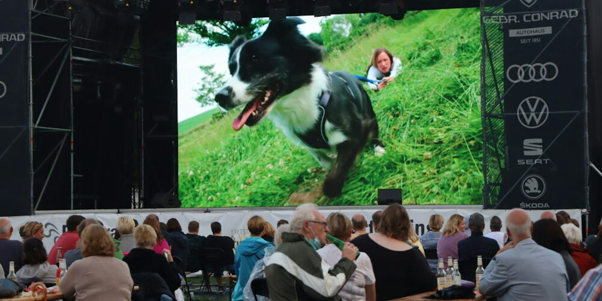 Um auch in Zeiten der Corona-Pandemie Kultur auf die Bühne zu bringen, hat die Firma PA-Line Mediatechnik ein Hygienekonzept entwickelt und mit Unterstützung der Stadt Erftstadt eine gut 3000 Quadratmeter große Wiese direkt neben ihrem Firmengebäude in die „Kultursommer-Arena“ verwandelt. „Erftstadt, das ist für mich ein Heimspiel“, begrüßte Rütter sein Publikum. Schließlich habe er mal in Scheuren gewohnt, dort habe es mit ihm und den Hunden angefangen. Mittlerweile ist der „Hundeprofi“ durch das Fernsehen bundesweit bekannt.