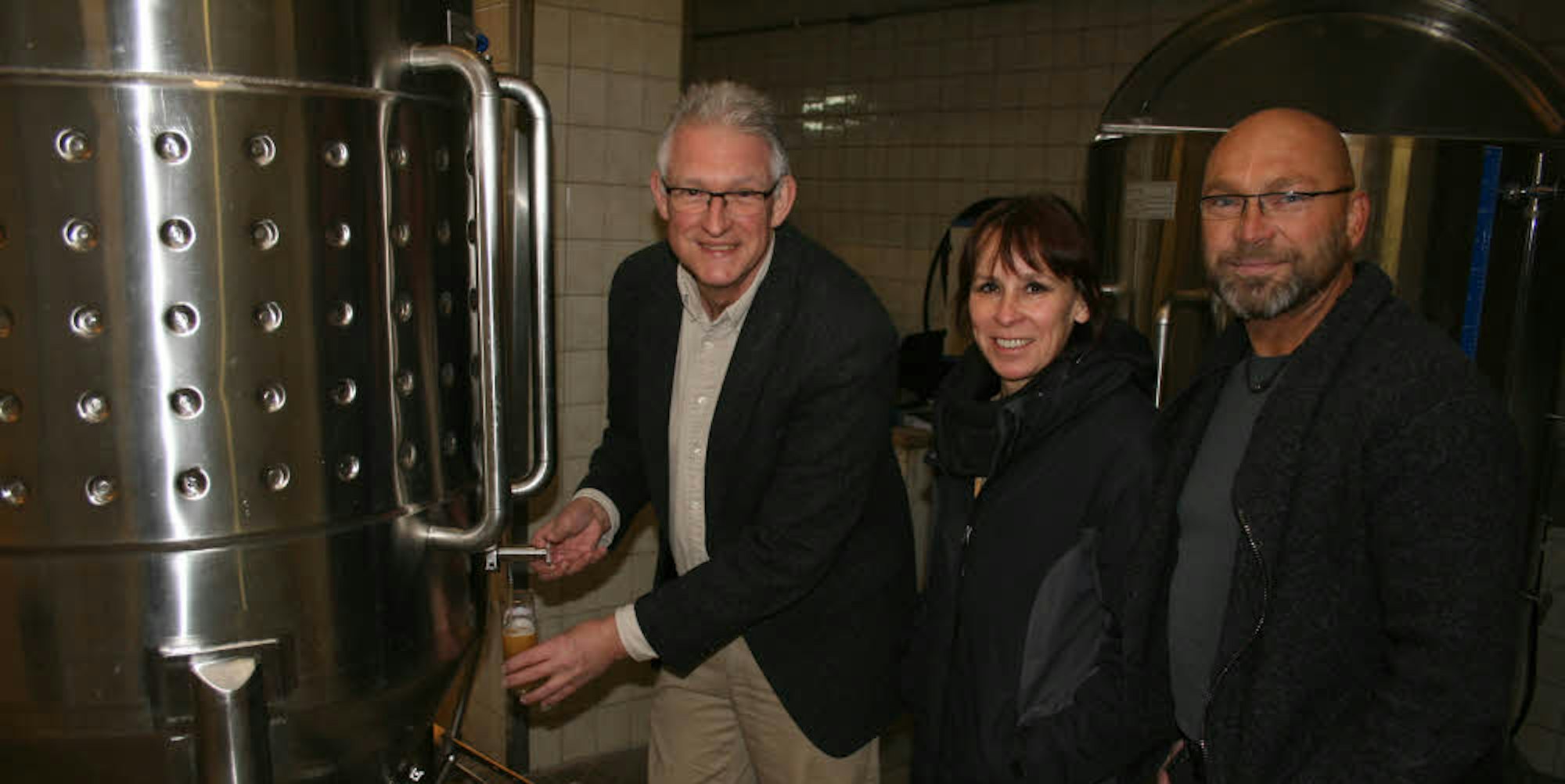 Klaus und Sandra Keller arbeiten mit Bauunternehmer Janusch Schuchmilski (v.l.) an ihrem Traum von einer Brauerei.
